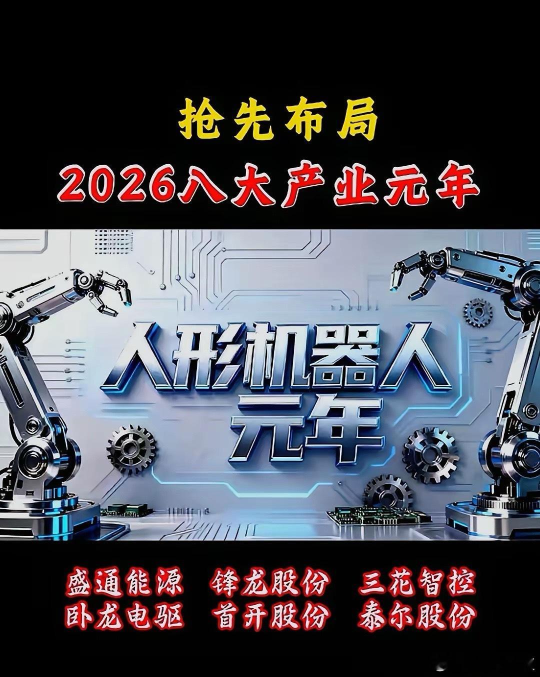 2026抢先布局,8大产业元年。产业1,以江西铜业、西部材料、紫金矿业等为代表的工业金属。产业2,以英维克、飞荣达、高澜股份等为代表的液冷领域。产业3,以海南发展、洲际油气、海南矿业等为代表的海南自贸区领域。产业4,以卧龙电驱、锋龙股份、三花智控、泰尔股份等为代表的人形机器人领域。产业5,以浙江世宝、北斗星通、山泽高科等为代表的无人驾驶领域。产业6,以电科网安、永鼎股份、航天电子、苏州科达、神州信息等为代表的量子计算领域。产业7,以雪人集团、王子新材、中超控股等为代表的可控核聚变领域。产业8,以航天发展、航天动力、再生科技、神剑股份等为代表的商业航天领域。