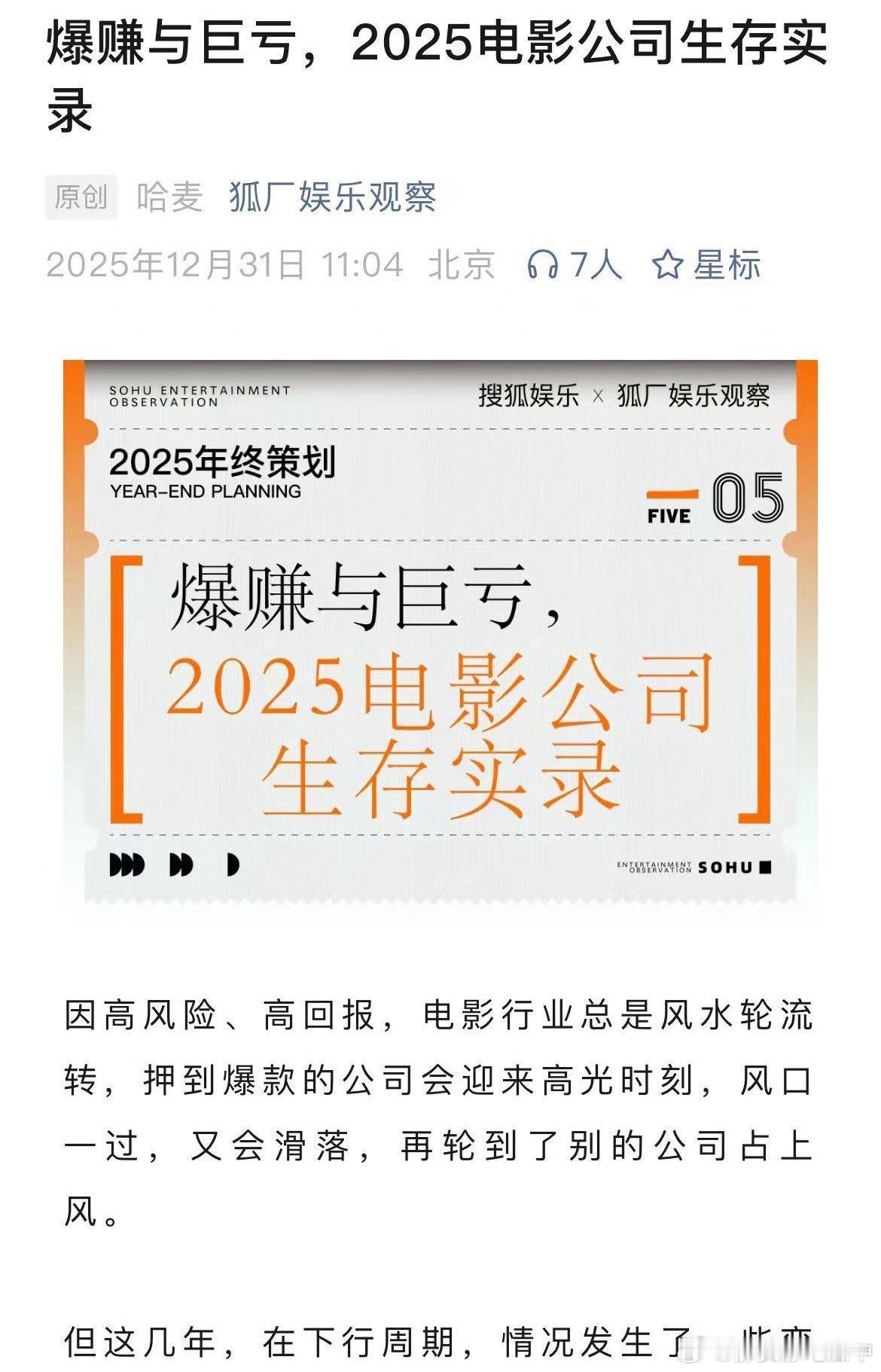 狐厂娱乐观察发文…在春节档大盘暴涨的情况下,中影刨去盈利依旧亏损1.408亿,主