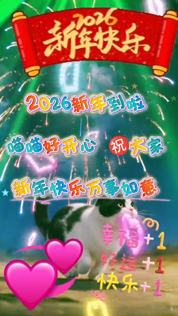 喵喵好开心祝大卖,新年快乐万事如意。 2026新年到啦,好运+1,快乐+1。
