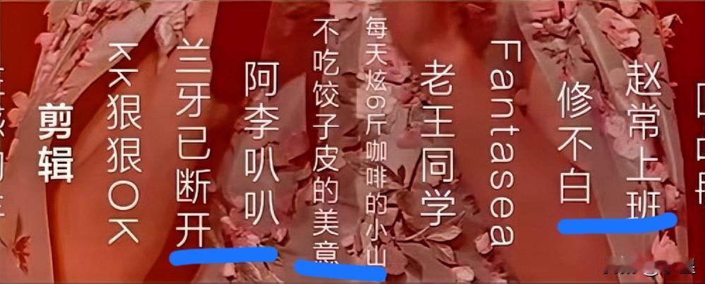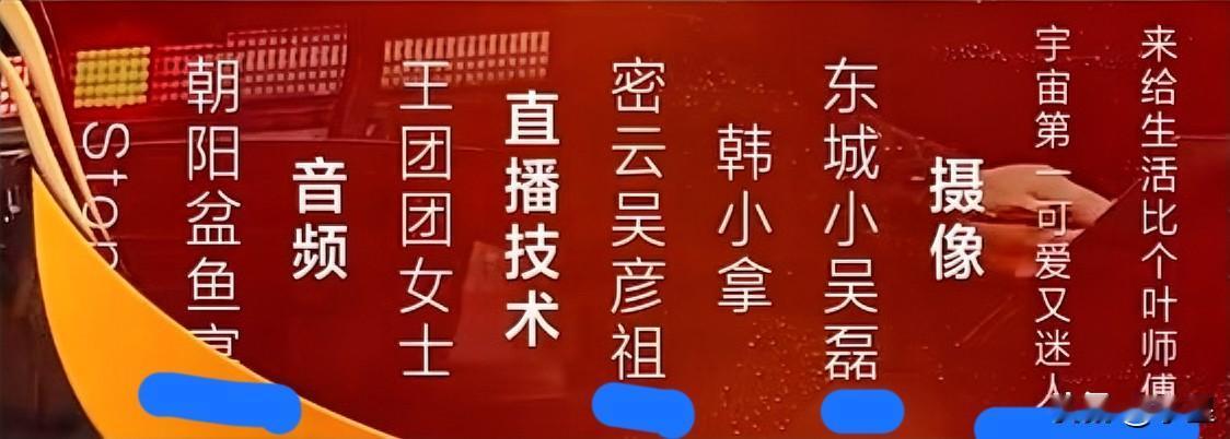 本来董宇辉办的这个跨年晚会 最后一首歌出来的时候都听哭了 结果看到演职人员表…又哭又笑[捂脸] 总导演总监制是董宇辉 正常 后面开始画风突变 统筹是方胖胖和王夭夭? 这个方胖胖不会是方成林吧[抠鼻] 朝阳盆鱼宴、密云吴彦祖是什么鬼 还有后面那些一长串的网名 宇宙第一可爱又迷人[灵光一闪] 来给生活比个叶师傅[捂脸] 以及剪辑师:不吃饺子皮的美意 和每天炫6斤咖啡的小山[捂脸] 办了这么大型的晚会 那在履历上可是浓墨重彩的一笔 这些家伙直接用网名?[捂脸] 有才的人果然都任性啊 现在就想对号入座 真好奇他们都是谁[偷笑]