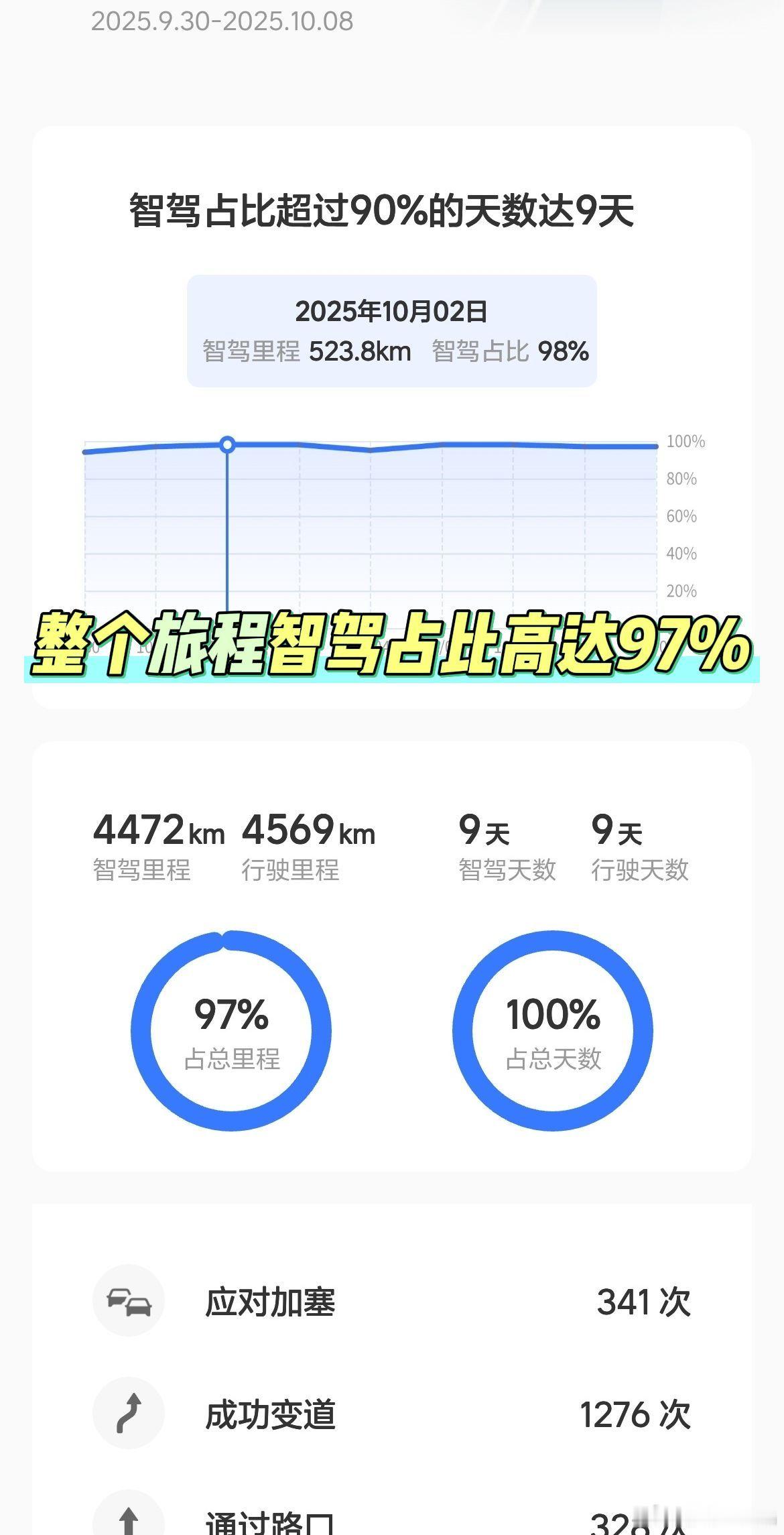 理想的川西之旅人生有童话理想能实现理想旅行家 今年的国庆长假期,我开着车带上家人到川西九寨沟自驾游。深邃碧绿的湖水,色彩斑斓的沿岸树林,时阴时晴的变幻景色,九寨沟真的不愧被誉为“人间仙境”!值得一提的是,川西之旅总里程为4569公里,其中智驾里程的占比居然高达97%。理想NOA让我们家的出行变得更安全更省心!