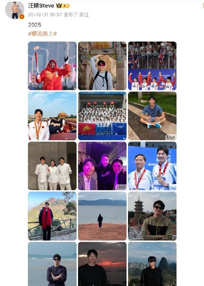 汪顺15图总结2025年 发博总结2025,并配文“2025顺流而上 ”