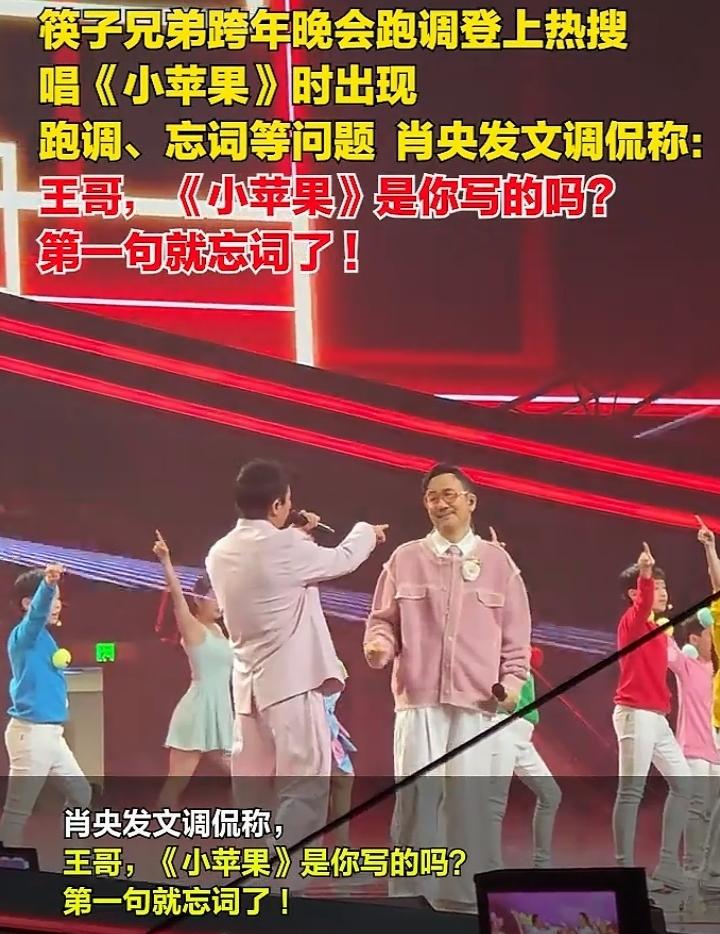 一觉醒来,筷子兄弟就登上热搜。 不过这热搜可不是什么好事,而是一件尴尬事情,两人参加了的东方卫视的跨年演唱会,演唱《小苹果》时王太利第一句就忘词了,随后还出现了跑调的情况。 更可笑的是肖阳事后发文调侃,王哥,这《小苹果》是你写的吗,第一句就忘词了? 很明显,肖阳发文是为王太利化解尴尬,但观众对这个表演失误小插曲的评价,表示王太利不太重视这次演唱会,一来他一直是组合里音乐水平最高的,肖阳主打的是演戏,而王太利是能唱能创作的全能歌手,更别说是跨年演唱会这样的大舞台,应该提前准备好,不应该失误。 不得不说,这个小插曲,应该是哥俩的一个小黑料了,这么低级的2个错误,不应该是一个专业歌手在同一首歌上能表现出来的。
