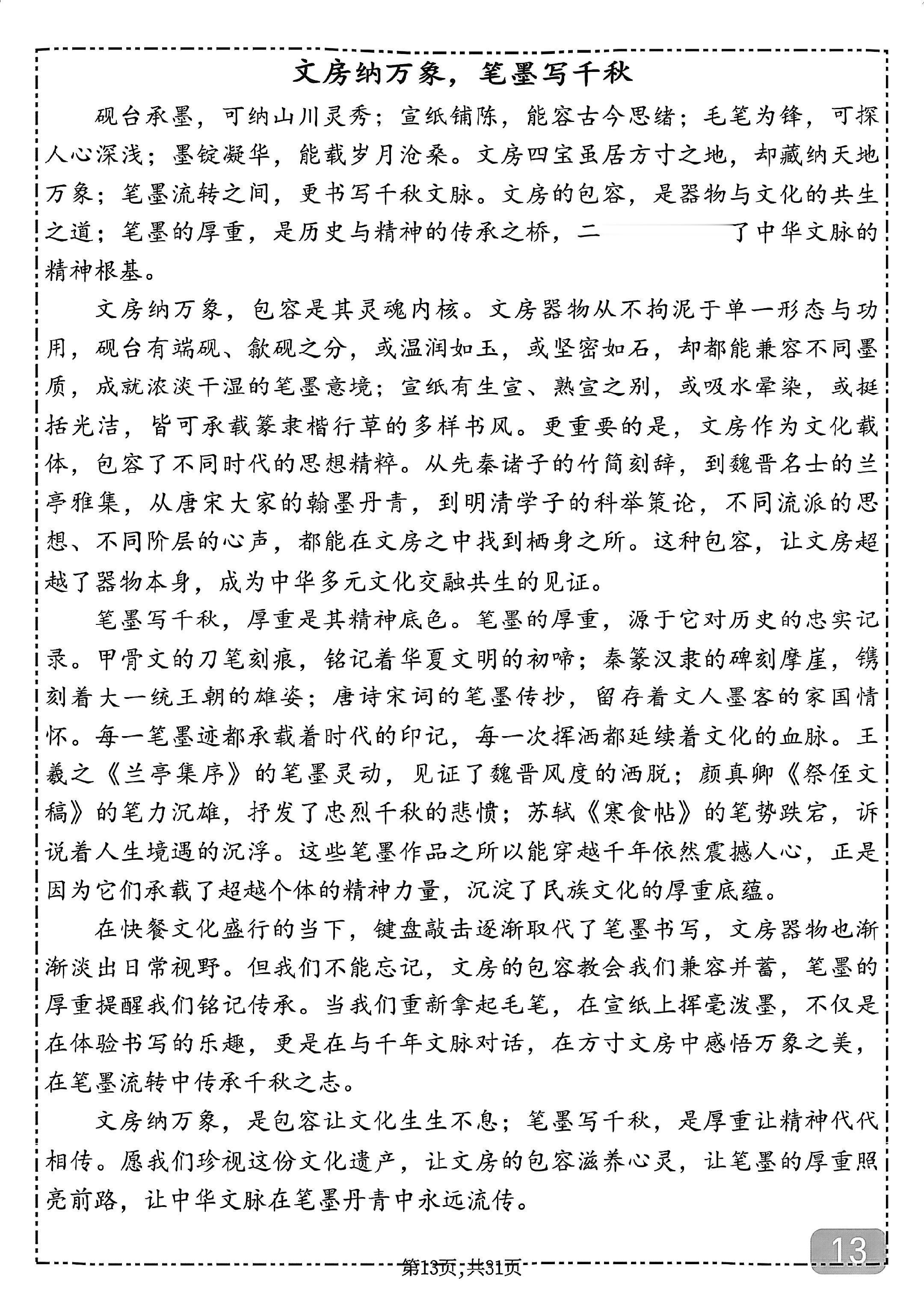 30篇写传统文化的优秀作文范文,背下来,你也可以才华横溢,落笔生花