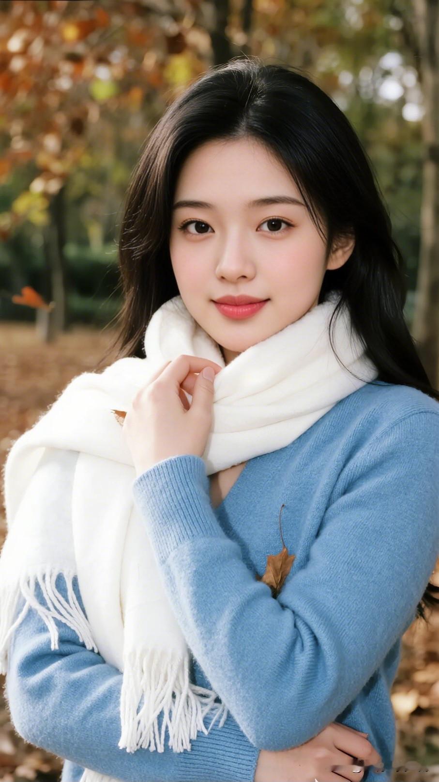 秋叶落,美人倚,心自醉。女人最耐看的长相是什么样的 秋日暖阳下,温柔少女与落叶相伴。
