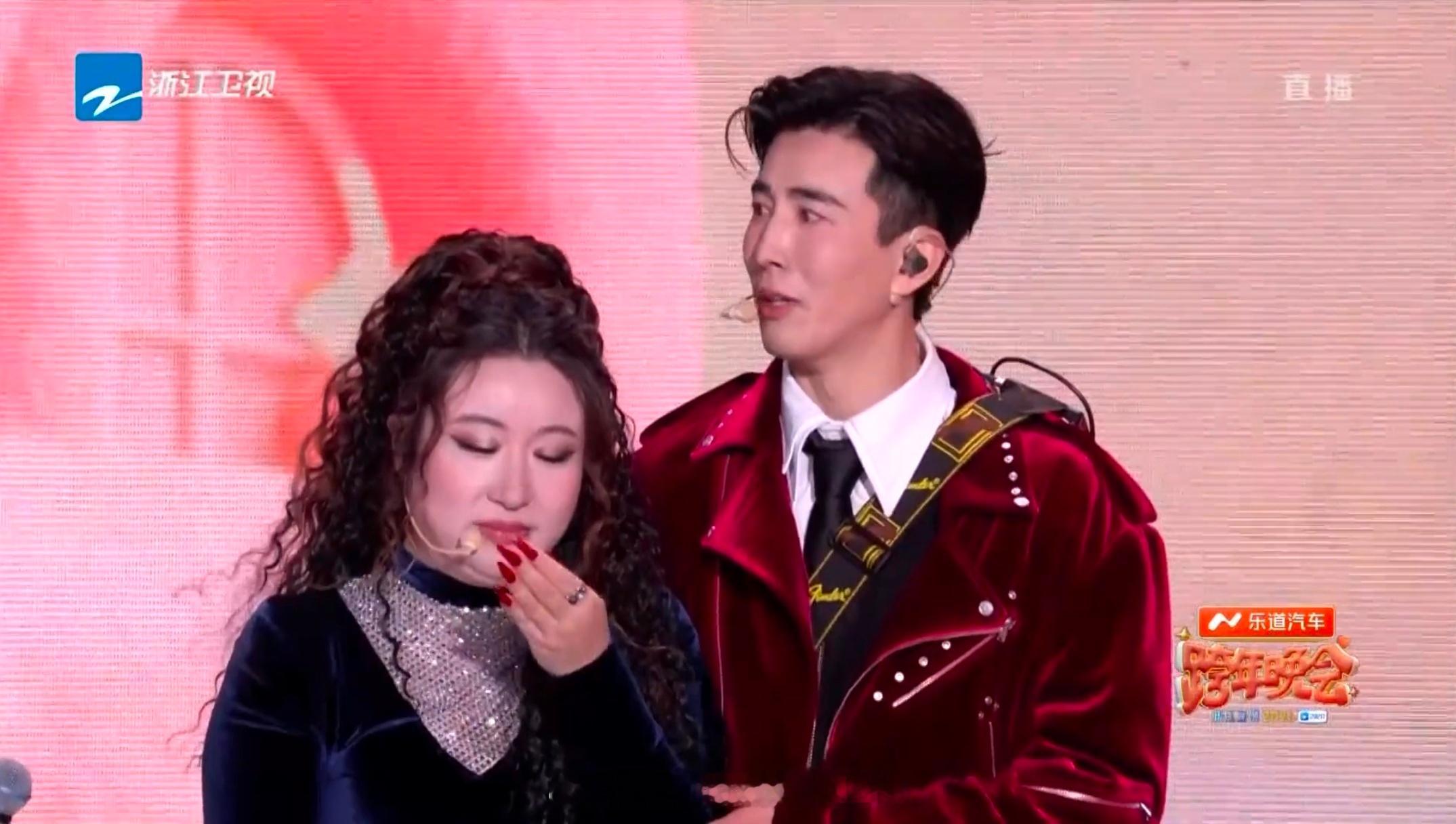 本来以为又是一个锤娜丽莎和他的人间油物男友的搞笑表演……没想到是现场求婚啊!!!!!但这俩人真的是又感人又搞笑 俩人都哭的稀里哗啦的,两人还在一边说『唱得好难听』『还挺合适、还以为(戒指)买大了』『干嘛在电视台搞这套』……哈哈哈哈哈哈哈哈笑死……浙江卫视跨年 李川求婚锤娜丽莎