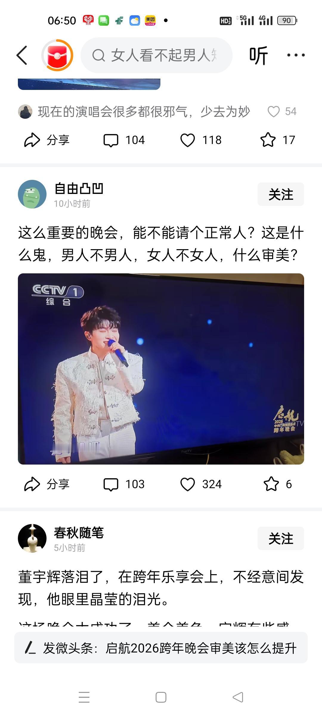 周深的跨年晚会又引来一波吐槽, 不过我觉得大家应该多些包容, 周深的唱功还是挺不错的, 就跟李玉刚老师一样, 只是擅长唱女声, 不该被如此批评