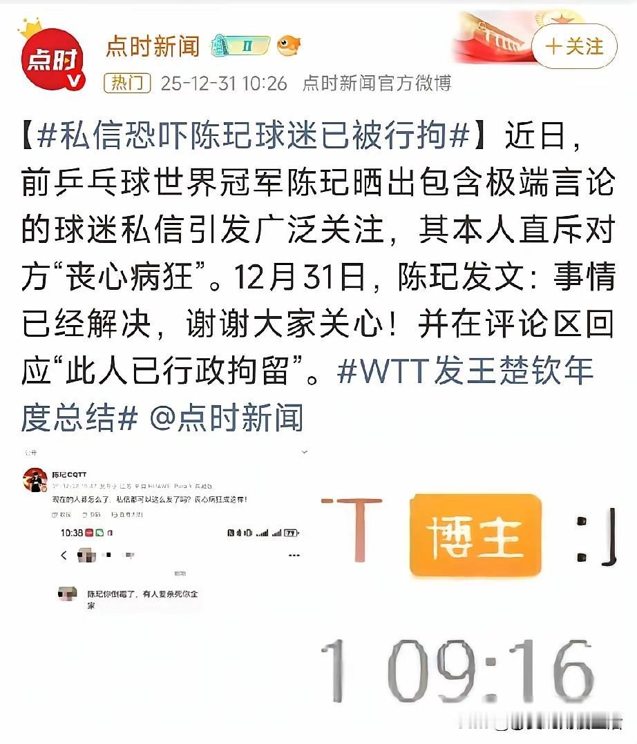 发生南京海底捞事件不稀奇也不意外? 为什么?因为陈玘一个已经退役多年的前国家队乒乓球运动员,几个月前都被黑粉攻击过,甚至直接私信恐吓他。让一个没有出现在大众视野的江苏省队教练都这样。何况王楚钦这么高影响力和高曝光度的运动员了。更重要的是如果是偶尔发生在单个人身上或许还能理解。数次的,频繁的,组团的发生那就是有人恶意组织,攻击谩骂侮辱了。这就是犯罪的。还有个别博主借此带节奏,主观偏颇给运动员扣帽子推波助澜的直接给他禁言封号。 希望所有被黑粉骚扰的运动员都像陈玘那样,收集好证据,运用法律武器让这些黑粉为他们的年轻和无知的行为付出代价。也让那些个容纳这种事情的发生店铺和场所付出代价。