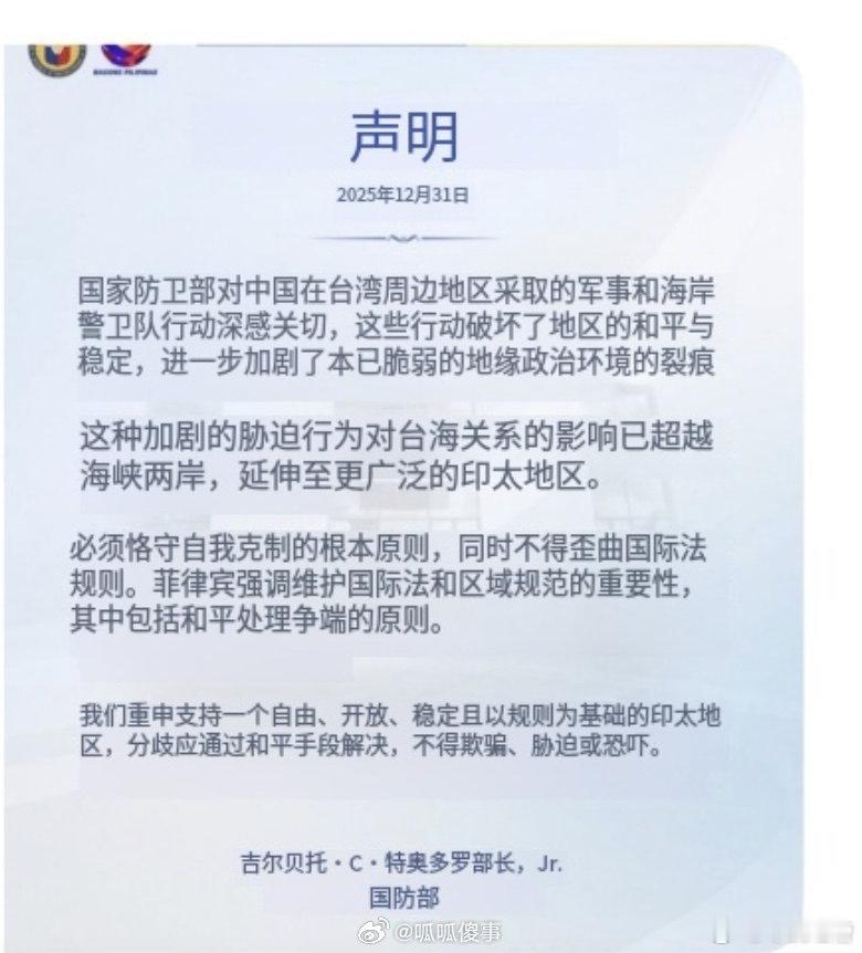 围台演习,日本沉默,美国沉默,结果菲律宾居然跳出来了,这不得把蛙们感动的三叩九拜
