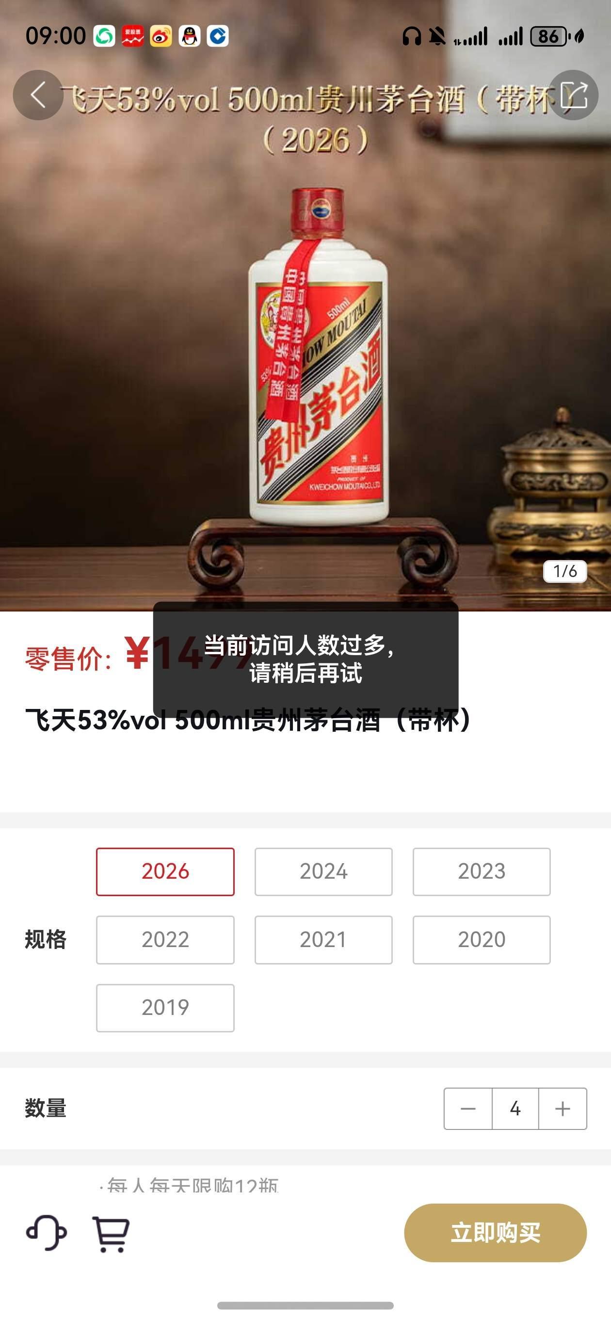 昨晚茅台放大招,飞天茅台在i茅台正式发售,1499一瓶,每位用户每日最多可购买12瓶。 茅台这波就是直接转直销了,相当于把经销商利润变成自己的。看来茅台业绩压力很大啊! 爱股君刚去准备买几瓶支持下,发现竟然买不到,直接秒没了啊。看来1499的正宗茅台大家还是买账的!白酒老登节后是不是该反弹一下了。