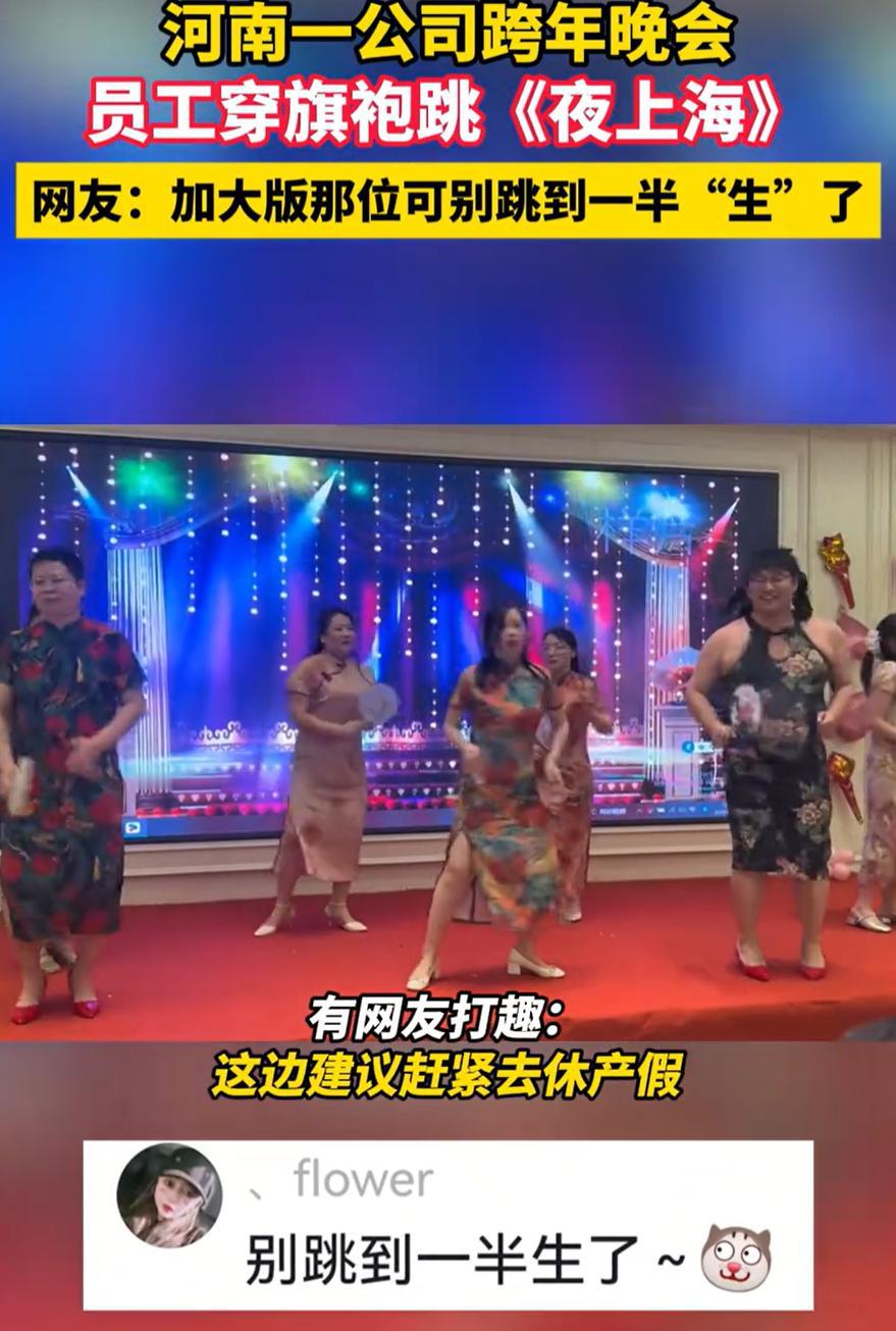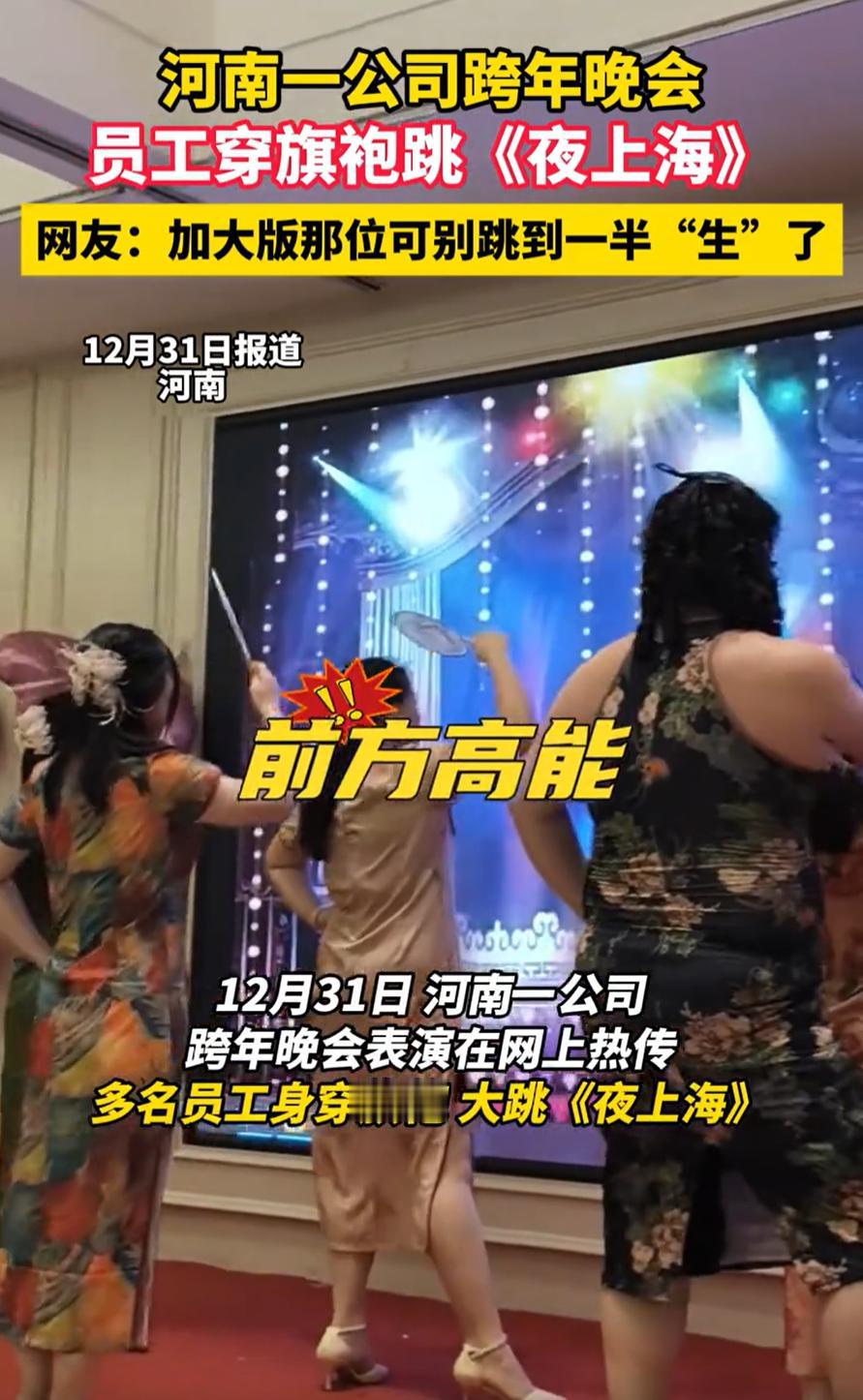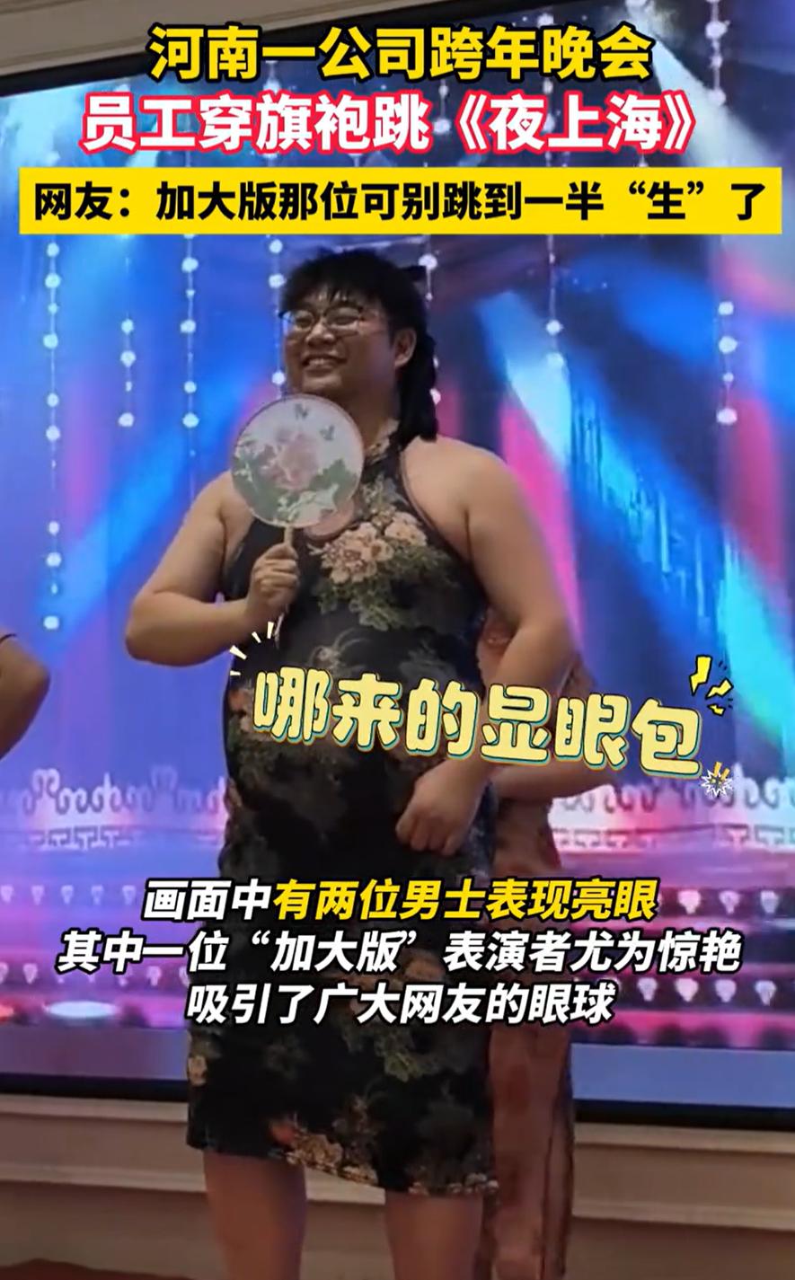 只要你不尴尬,尴尬的就是别人!河南,一家公司举办跨年晚会,由员工亲自上台表演节目,这本来很正常,可这家公司却让男员工穿着旗袍上台表演“夜上海”,其中一位“加大版”员工更是让网友直呼辣眼睛,这样的表演合适吗? 视频显示,在台上表演节目的有男有女,所有人都穿着旗袍拿着小扇子,不过站在最前面的两名男子却成了现眼包,寸头、大体格、再加上高跟鞋,怎么看都觉得反差,不过他们一出现,也引起了台下同事一阵阵的欢笑 现场气氛倒是很热闹。可视频传到网上后,网友们的看法却分成了两派 有人觉得,辛苦工作一年,年会上放松一下没什么不妥。表演的员工自己愿意,看的同事也开心,这就是年会的意义——让大家在忙碌之余有个释放的机会。穿什么、演什么,只要不伤害他人,乐一乐又何妨? 但也有人认为,这样的表演缺乏美感,甚至有些低俗。男扮女装本身不是问题,但刻意突出身材反差、制造“搞笑效果”,可能已经超出了娱乐的边界,变成了一种哗众取宠 说实话,类似的情况并不少见,很多公司的年会上,都有员工反串表演的环节。有的是部门领导扮成卡通人物,有的是年轻同事组队跳流行舞,形式各式各样。大家在乎的往往不是节目有多专业,而是那种一起准备、一起欢笑的过程 职场不易,每个人都在为生活努力。一年到头,有个机会让大家放下工作中的角色,轻松地笑一笑,其实是件温暖的事。只要这份快乐不建立在任何人的难堪之上,不过度迎合低级趣味,多一点包容,我觉得只要当事人不在意,就没必要过度解读