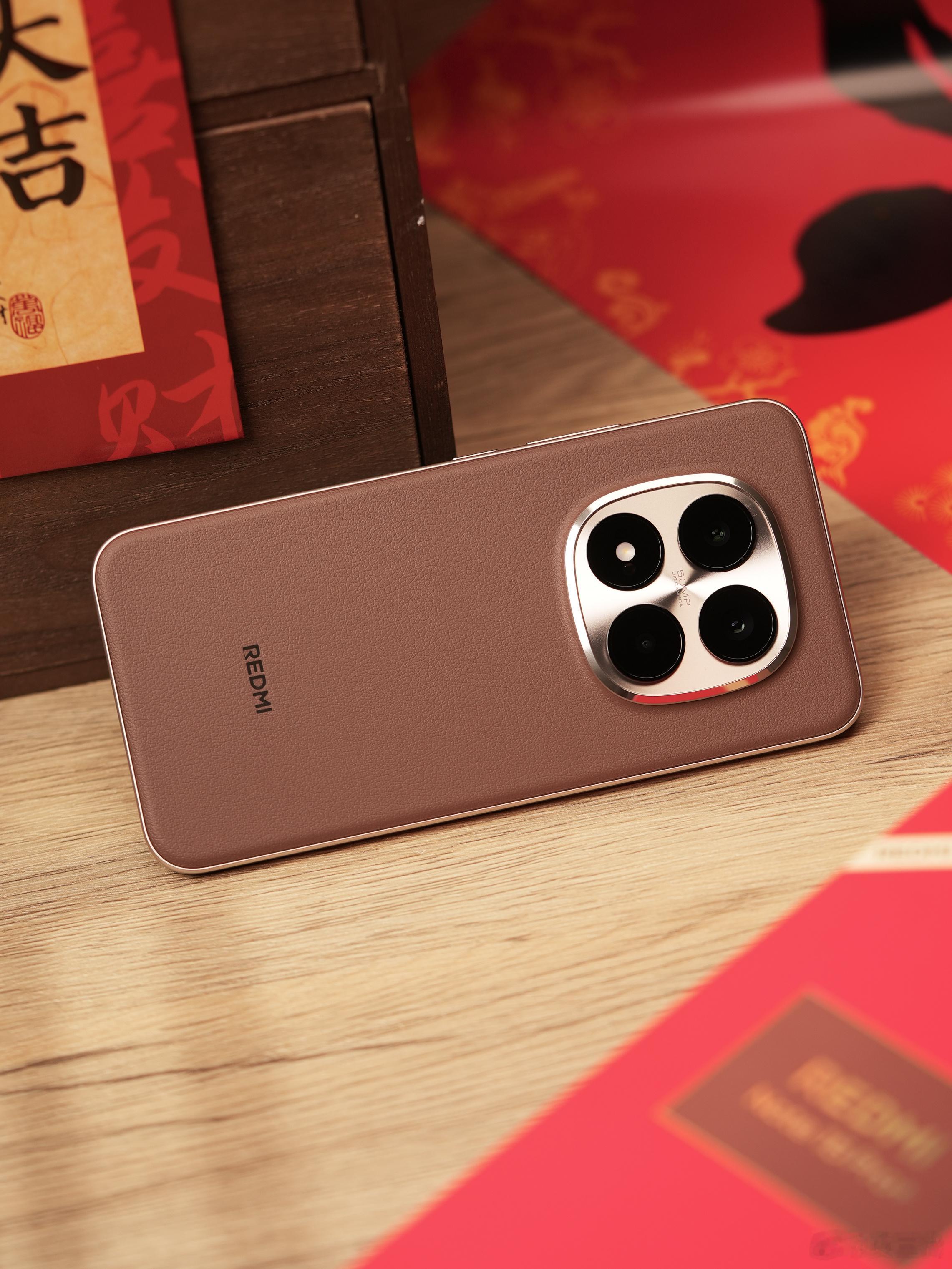 REDMINote15系列新春版新配色「摩卡棕」,有着我非常喜欢的等深微曲屏和素皮后盖,挺有高级感的。并且它依旧支持满级防水,防摔,兼顾耐用的同时颜值还不错,新年新气象,换个新颜色的手机吧