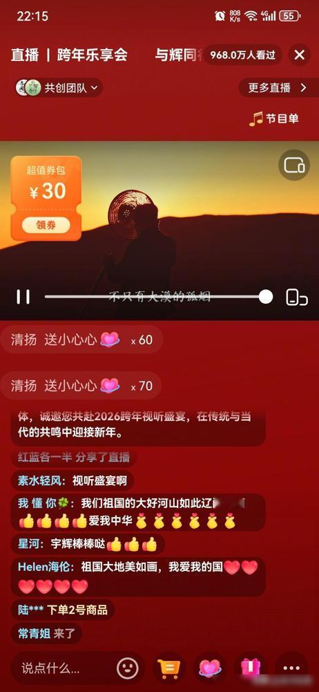 跟大家说呀。董宇辉一人之力,干翻了所卫视!这个在明天(2026年1月1日)肯定是热点!肯定是热点! 其实就是昨晚董宇辉搞了场《与辉同行的跨年乐享会》,结果我们全家人谁也没去调台,直接盯着屏幕被硬控了整整两个半小时。 说实话,以前看跨年都是为了听个响,但这回我是真切感受到了什么叫审美上的降维打击。 我最在意的是那种分寸感,现在很多卫视的晚会简直就是加长版的广告大片,闹哄哄的让人心烦。 但这次乐享会走的是高水准路线,那种安静的力量反而更抓人,我感觉这才是跨年该有的艺术氛围。 大概是因为大家平时节奏太快了,这种有质感、有内容的直播反倒成了稀缺品,真的挺难得。 看完之后我甚至觉得,传统电视晚会的导演们可能得重新思考一下观众到底想看什么了。 反正我是打算等这两天稍微空闲一点,必须得安安静静地把整场回放再重头欣赏一遍。 在这个节骨眼上,能看到这样一场不掺水的艺术盛宴,这波确实是值了。