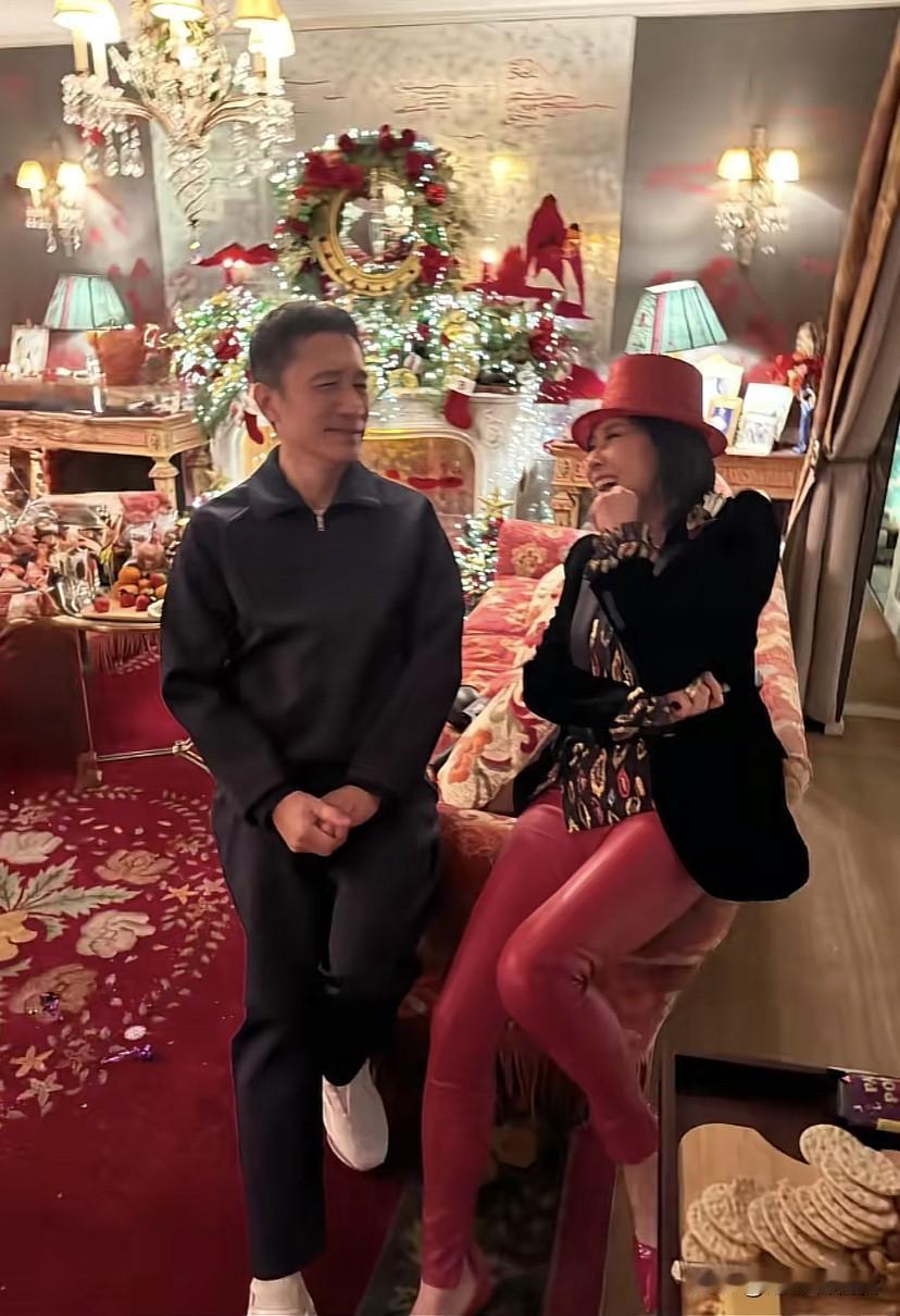 刘嘉玲元旦晒出与朋友跨年照片,老公梁朝伟也在家,家里布置的非常漂亮,朋友来了很热闹,梁朝伟和刘嘉玲在一起有说有笑很开心。 从刘嘉玲家往外看香港的夜景也很美,刘嘉玲家里布置的好有新年的感觉,几十岁的人像孩子一样,戴了各种装饰帽子眼镜拍照很可爱。 梁朝伟还尝试戴了一款发光的眼镜,一边体验一边笑,可见梁朝伟在家话不多,刘嘉玲属于外向型,跟老公梁朝伟侃侃而谈,梁朝伟在一边认真倾听,这画面很温馨呀!