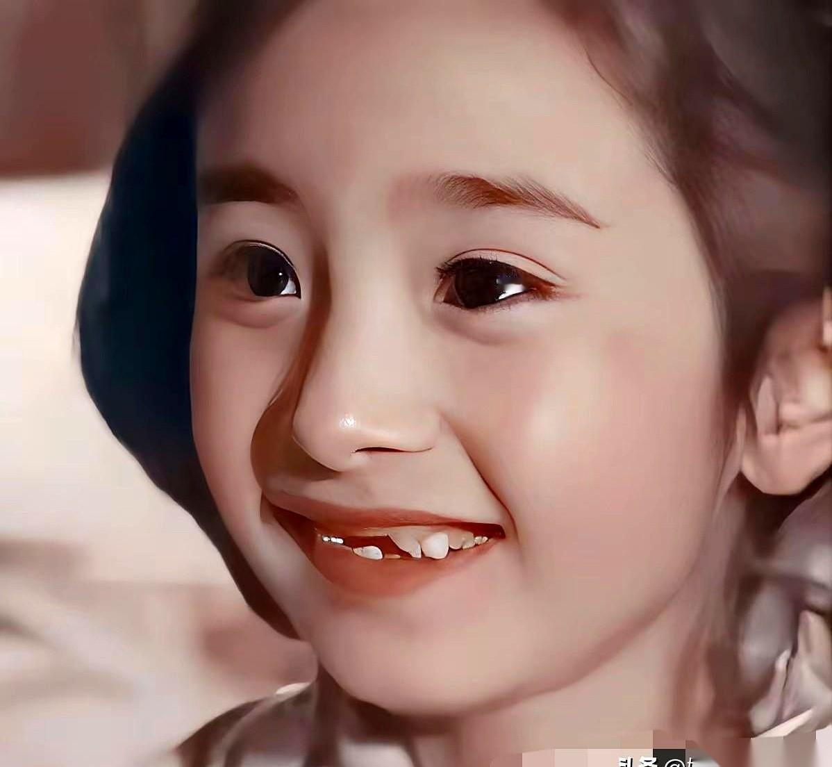 把杨幂小时候的照片,和她爸的摆在一起。 一张是灵气逼人的童年照,标准的瓜子脸,下