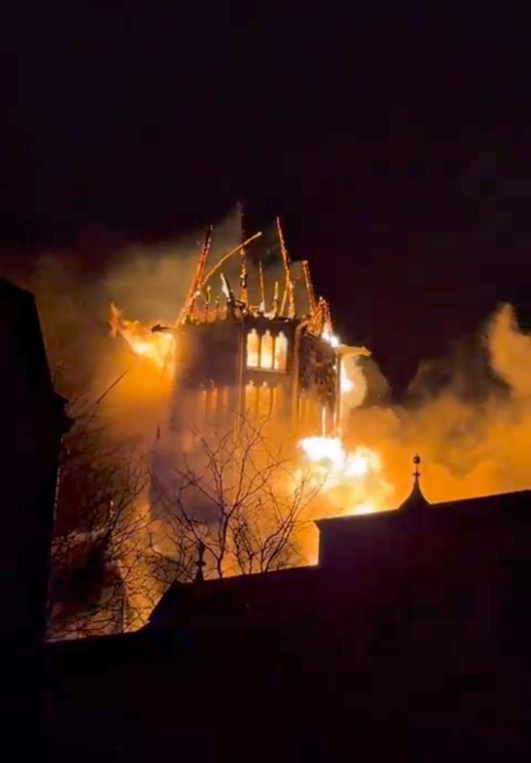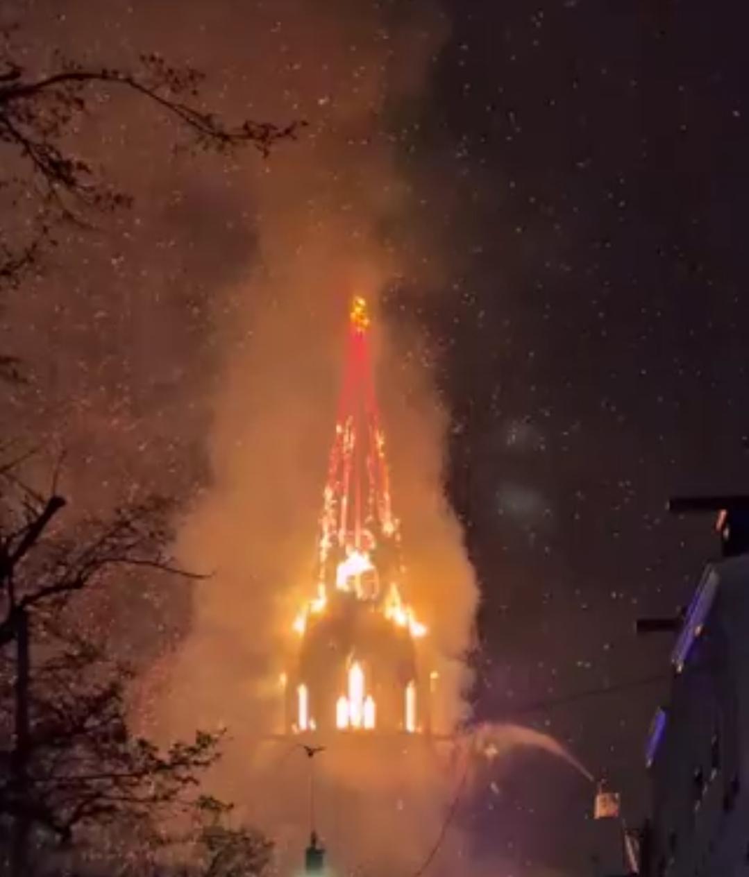 新闻快讯——2026年1月1日午夜刚过,荷兰阿姆斯特丹冯德尔教堂突发火灾,教堂塔楼在熊熊烈火中坍塌,起火原因目前尚不清楚。