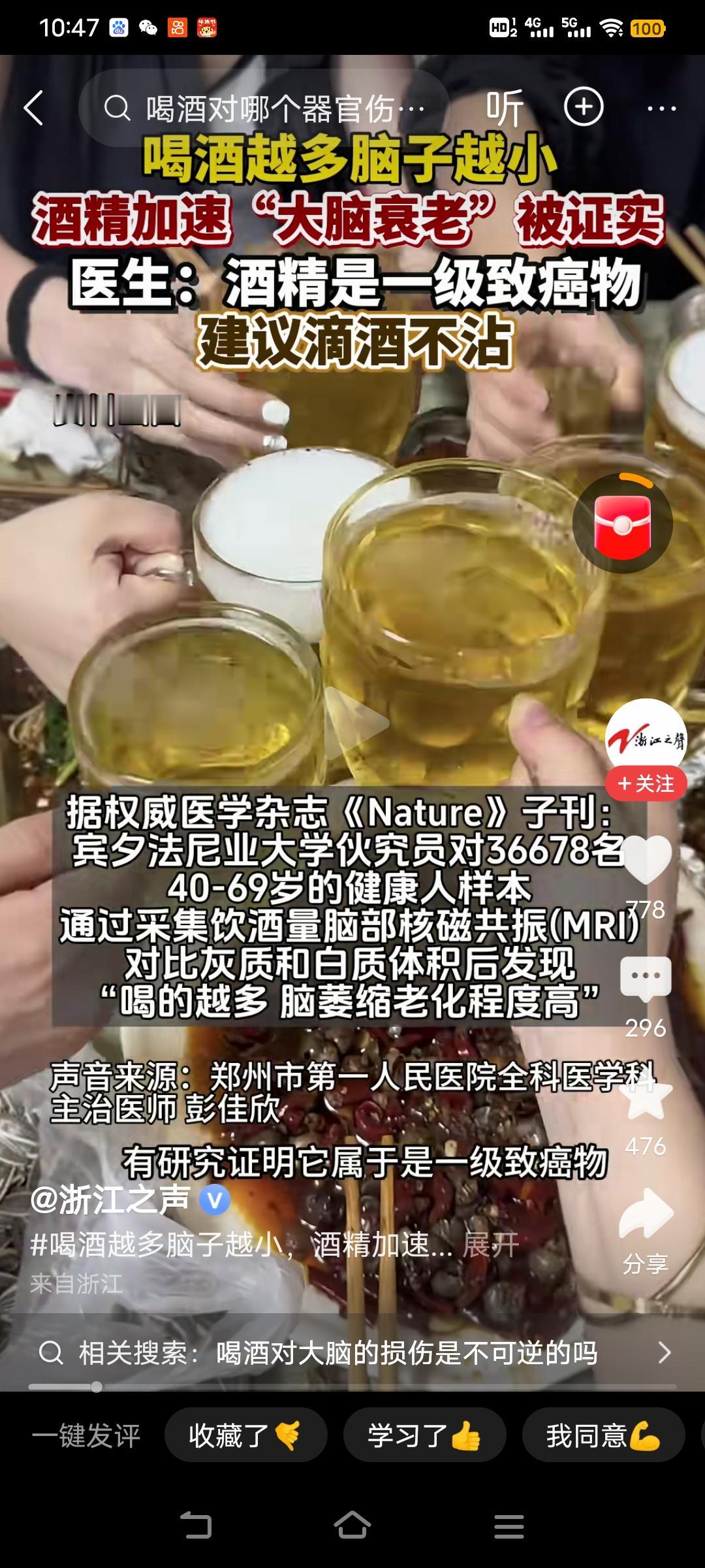大家要听医生的话,别犟。我爷爷在世的时候,顿顿不离酒,嫌啤酒没劲儿兑着白酒喝,结果90多岁才走的。