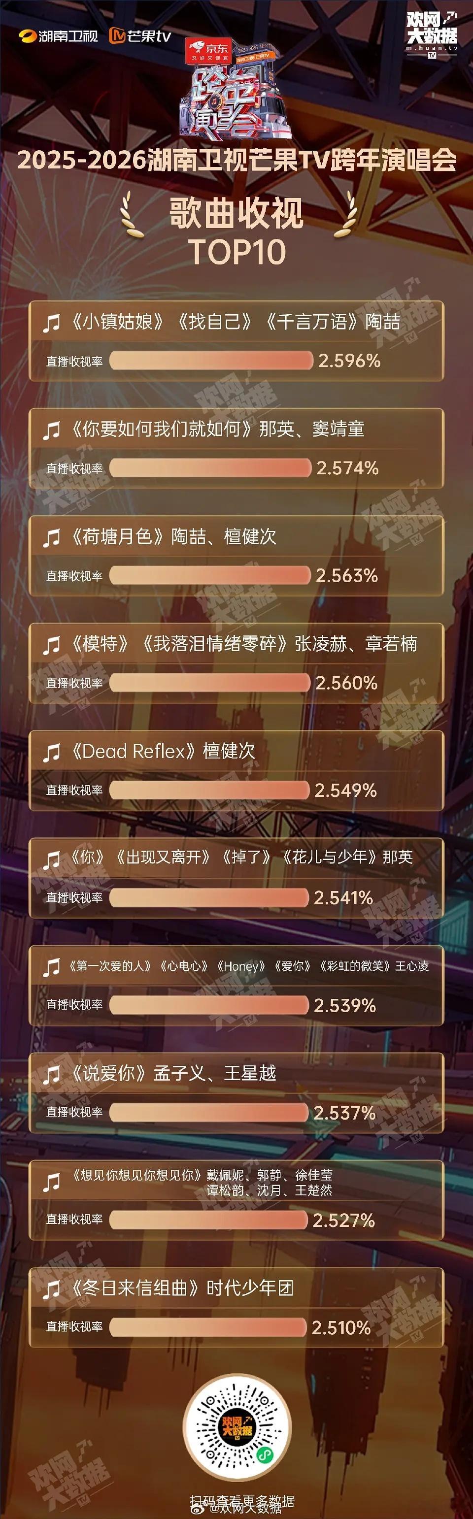 湖南卫视跨年晚会开场收视率绝对性碾压,综艺老大的位置不容撼动!这超高的收视率和