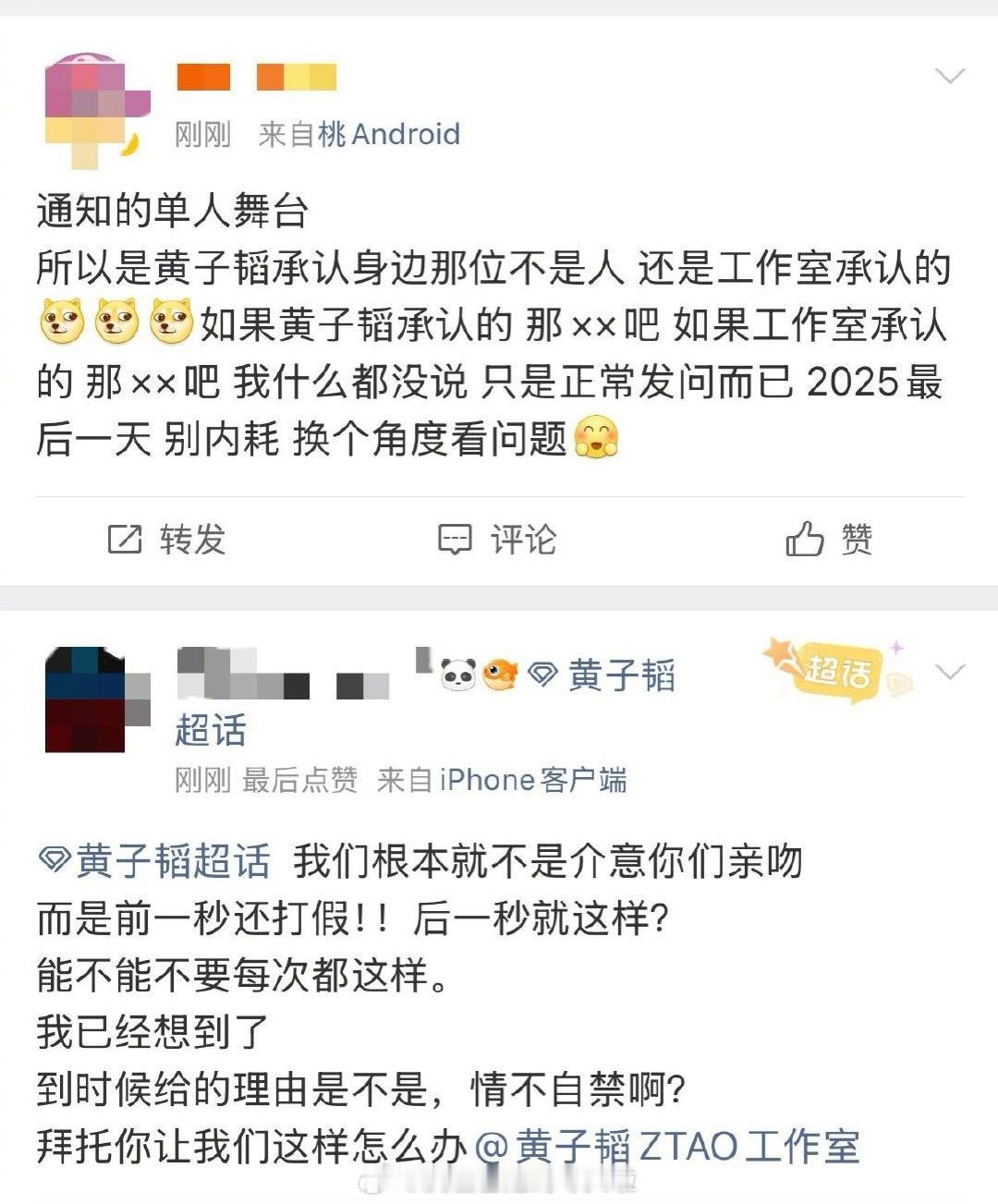 y1s1,粉丝现在还信黄子韬的辟谣吗。。。之前和徐艺洋的恋情就知道黄子韬本人说的都不是真的了。就奇怪小夫妻台上激吻也不是什么不好的事,工作室情为啥要辟谣,干直播卖货最重要的是说真话产品好吧,这样弄谁敢信他们的广告啊黄子韬工作室道歉