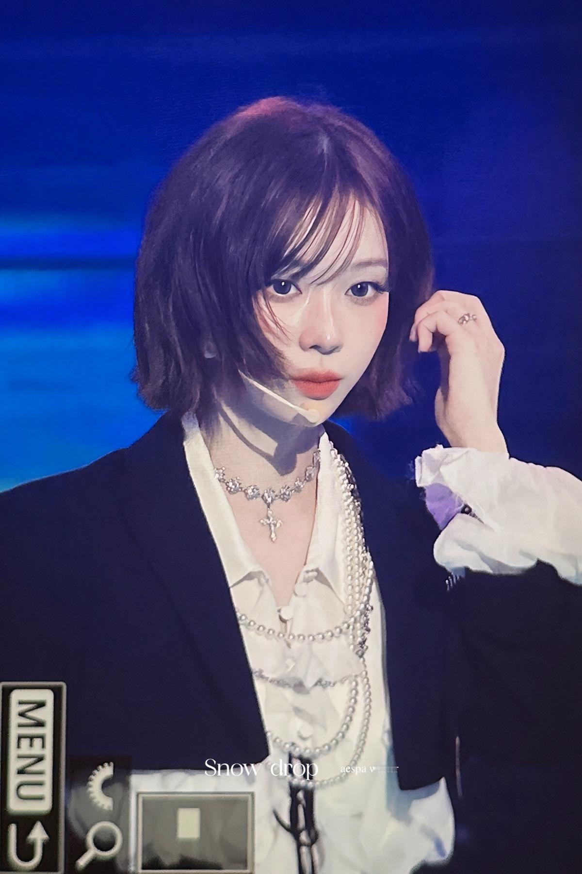 久违地回归短发的aespa金玟庭短发造型好有英气王子感,今天生日粗卡🤍