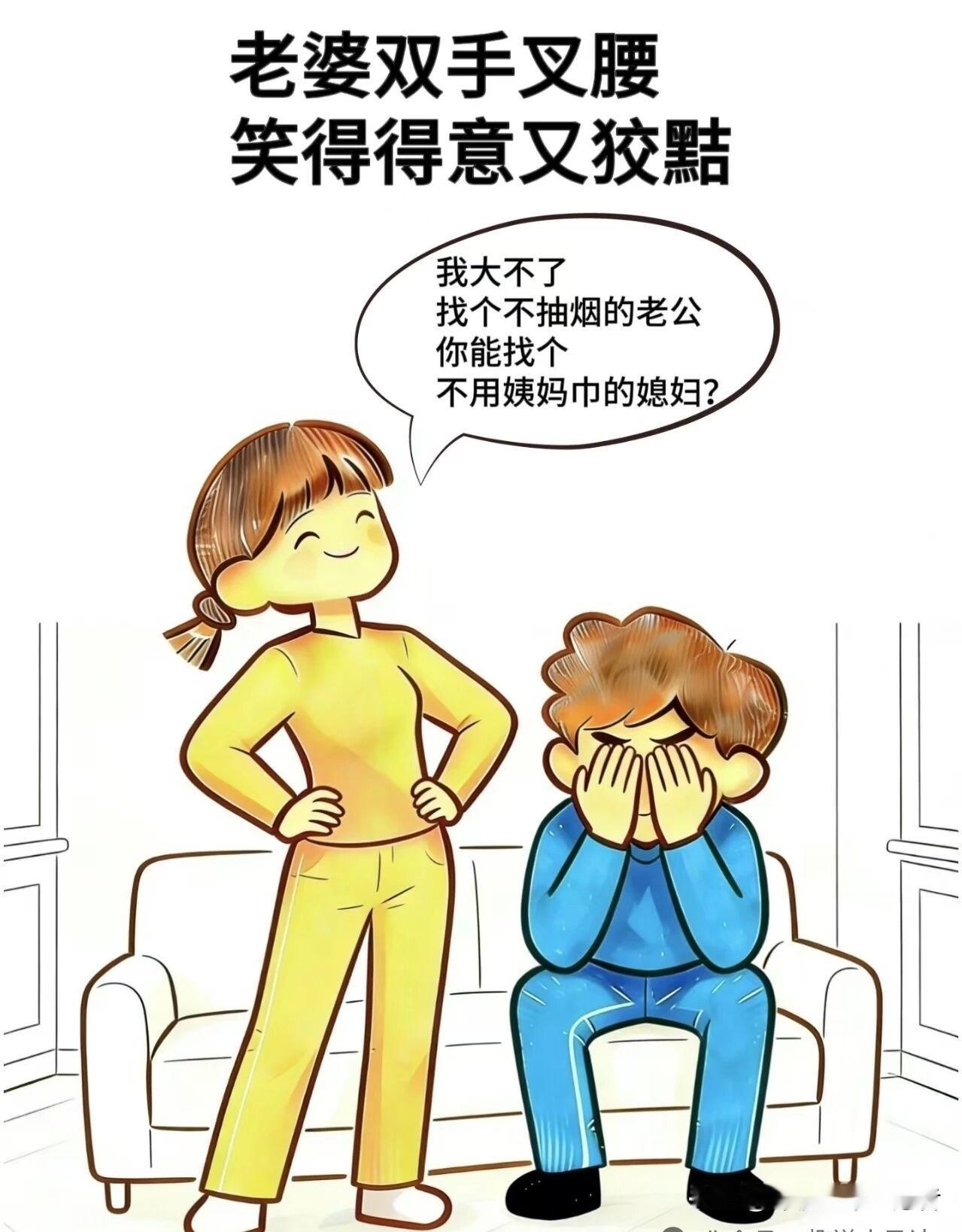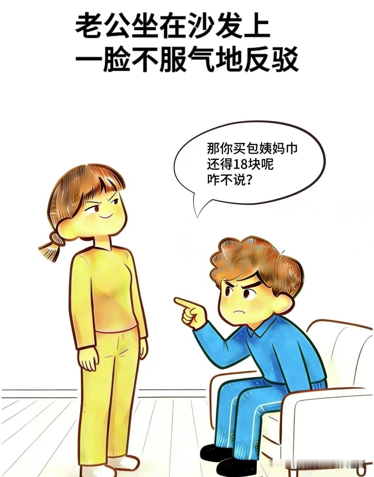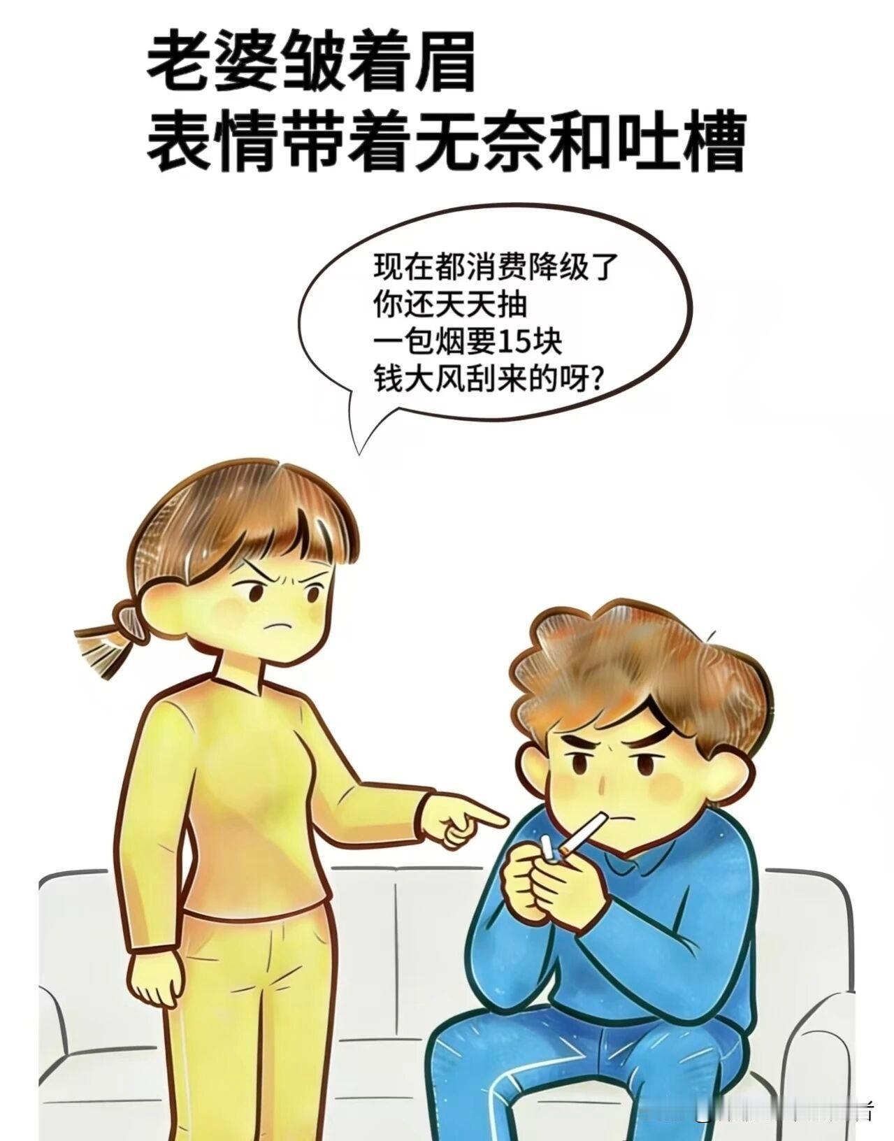 趣味漫画:老婆:消费都降级了,还天天抽烟,一包烟要15块钱…老公:那你买包卫生巾还要18块钱呢,老婆:我大不了找个不抽烟的老公趣味小漫画 漫画趣味经济