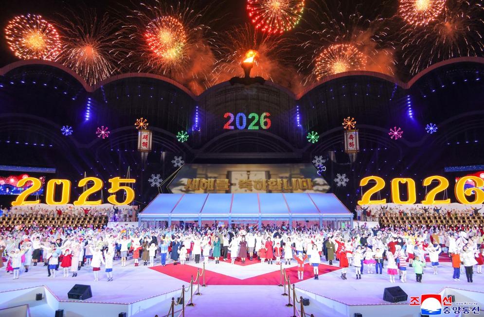 朝鲜举行2026年新年庆祝演出。演出以《热爱你》《辉煌的祖国》开场。《永远飘扬吧,国旗》把演出气氛推向高潮,演出结束,热烈的欢呼声再次爆发,烟花升空绽放,华丽装点首都夜空。元帅同志向热烈欢呼的群众亲切挥手致意,祈愿迎新年的全国所有家庭幸福美满,喜事临门。