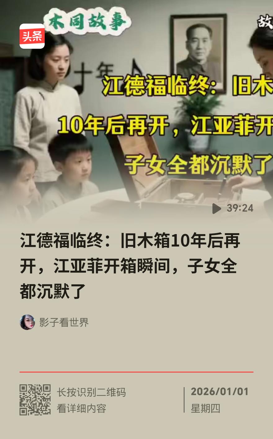江德福临终留木箱 十年后开箱真相让子女泪崩 原松山岛守备区司令员江德福临终前,留下一口樟木旧木箱,立下死规矩:死后十年方可打开,一天都不能提前。这个谜团,让一家人牵挂了整整十年。 2000年深秋,江德福在医院弥留之际,支开子女,只留妻子安杰在侧。他示意床底的旧木箱,阻止了安杰当场开箱的举动,用尽最后力气叮嘱,务必将箱子锁在衣柜顶端,等十年后再开启。 这十年里,家人对箱子猜测不断,性子急躁的女儿江亚菲曾试图撬锁,被安杰严厉制止。安杰坦言,自己也好奇万分,但更怕违逆老伴遗愿,也隐隐担忧箱中藏着影响家族名声的“罪证”。 转眼到了2010年,江德福十周年忌日,子女齐聚。安杰取出箱子,就在开箱前,她还死死抱住箱子,哭喊着里面是“罪证”。直到子女们承诺共同承担一切,她才松了手。 打开箱子的瞬间,所有人都红了眼眶。里面没有金银财宝,更没有罪证,只有一沓申请和一双芭蕾舞鞋。申请里记录着,当年江德福为了庇护出身不好的安杰,主动放弃晋升机会,甘愿驻守海岛;那双舞鞋,是安杰年轻时的心爱之物,江德福嘴上嫌弃要烧掉,实则偷偷珍藏了一辈子。 箱底还压着一张纸条,写着“这辈子娶你,划算。下辈子,还找你”。 原来,这十年之约,藏的从不是秘密,而是一位老兵对妻子沉甸甸的爱与守护。江德福老家 江德华演技 江得福