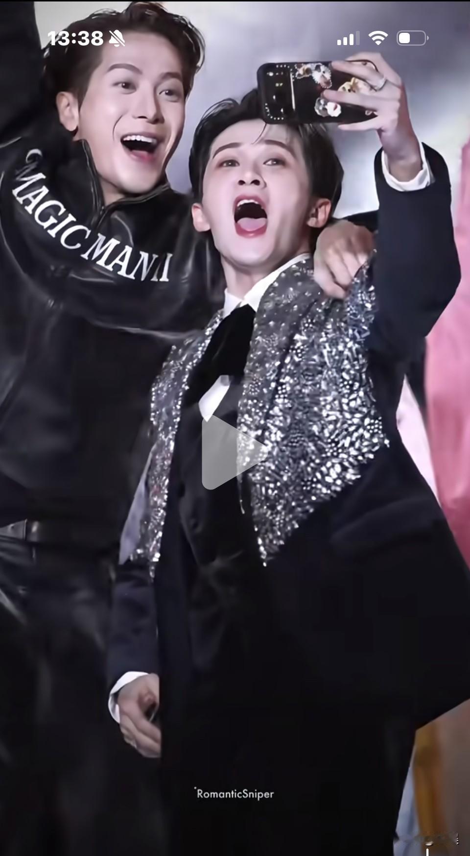 大哥怎么又被嘉尔哥按上了,这俩活宝这可爱太好玩了哈哈哈😂 嘉尔使劲晃,健次倾尽全力:录个视频,录个视频😂 王嘉尔像个大猩猩在檀健次身边跳,笑晕我了,真的感觉每次嘉尔见到健次就开心的像个猴子,可可爱爱[偷笑][偷笑]檀健次