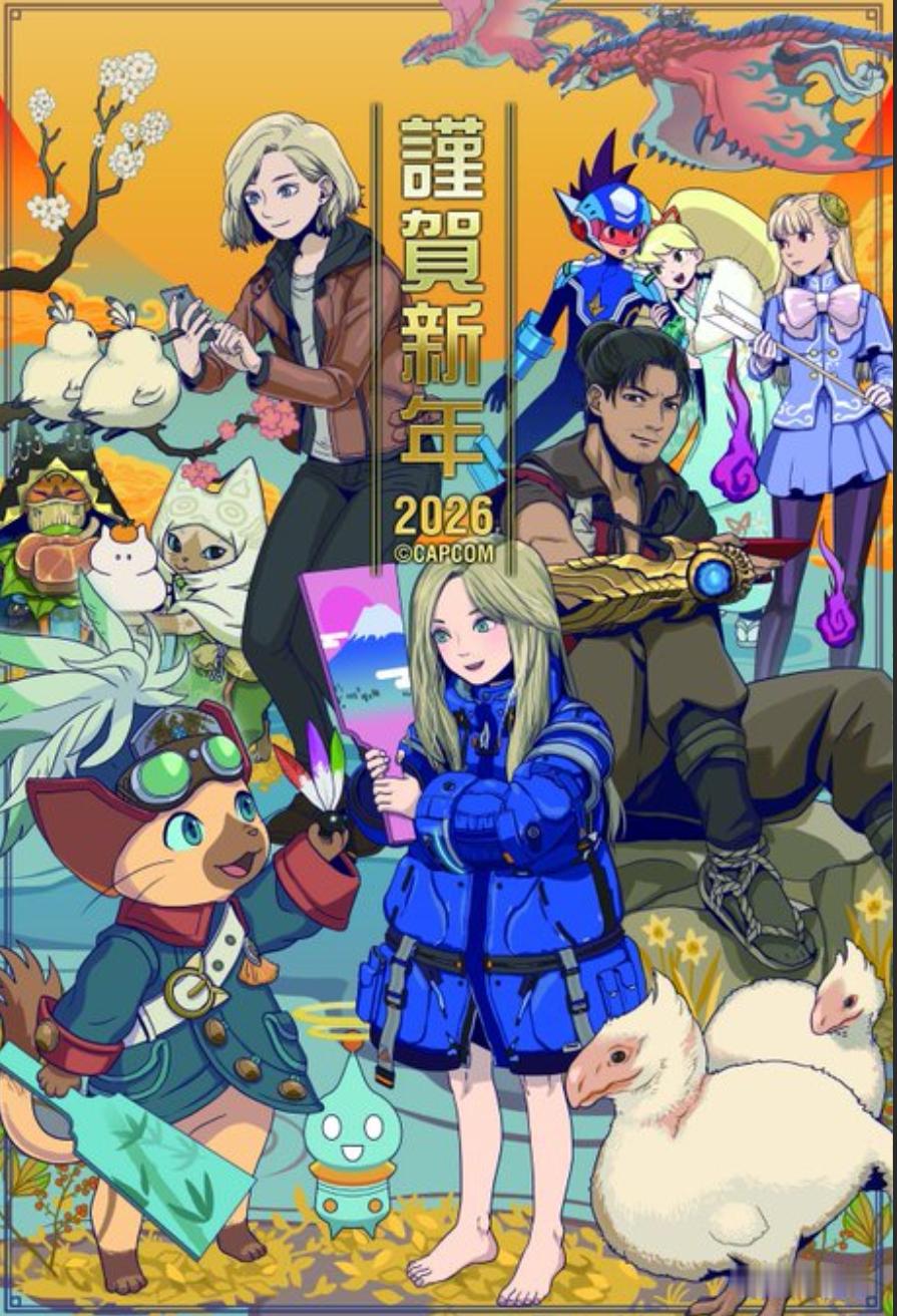 【卡普空发布新年贺图】卡普空官方今日发布了2026年的新年贺图。2026年!新年快乐。本年也请继续多多支持卡普空的游戏作品,以及迎来创业42周年的卡普空。