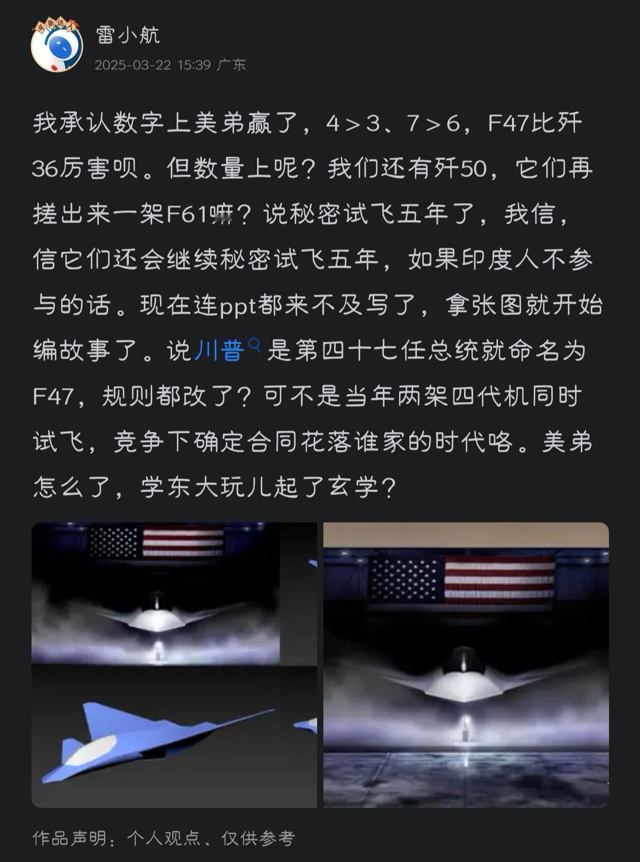 过年了,说点儿让美帝开心的事儿,考古一下自家帖子。去年我就说美国的F47还会再秘密试飞5年,这不到了年底了,连模型都造不出来。焦虑中。
