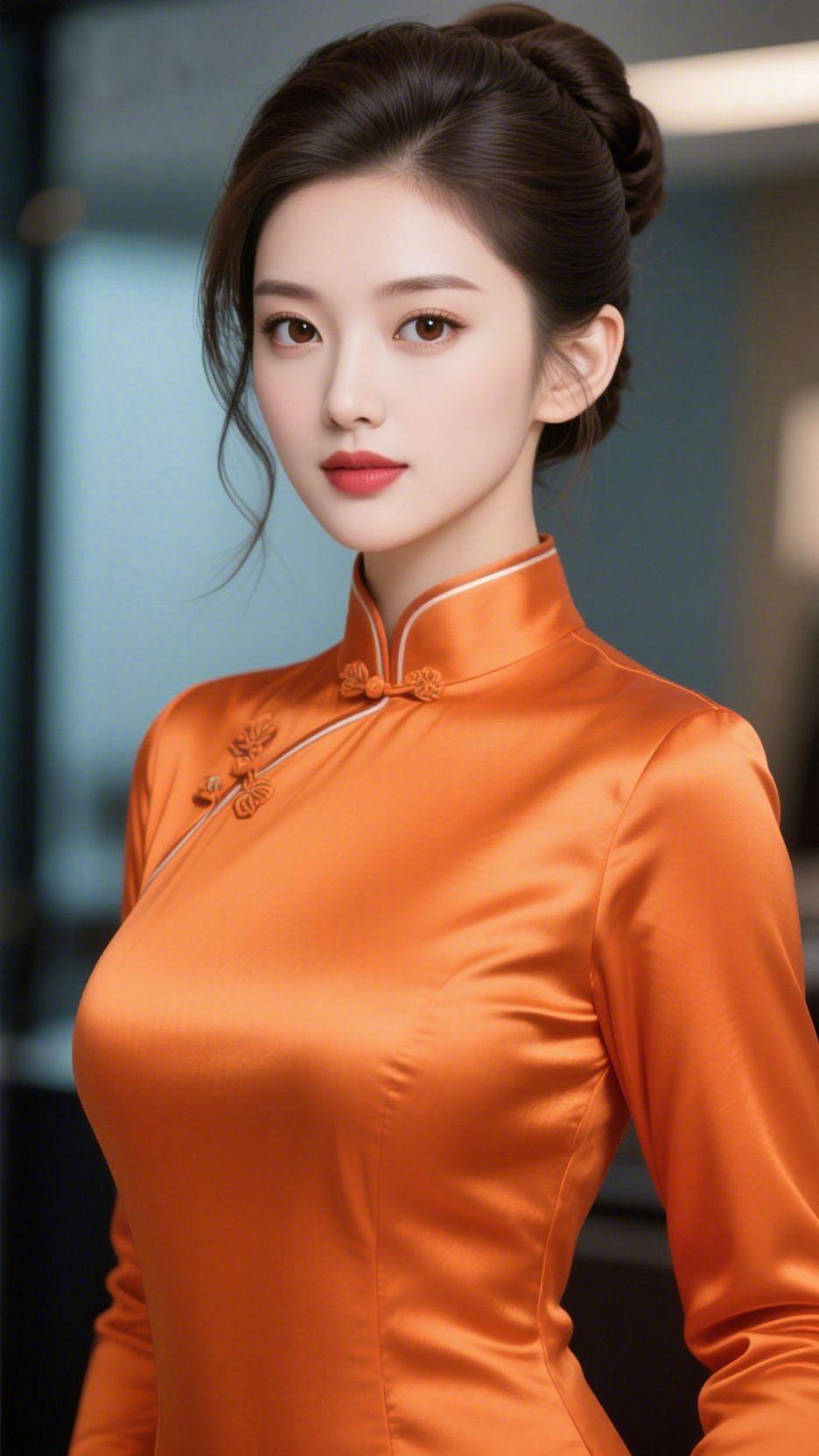 橙旗袍裹室间柔雅 柔光轻覆窗沿,她身上的橘色旗袍似盛了暖茶的柔——盘扣缀着雅意,缎料裹着轻光,衬得室内静意愈发明润。 发梢挽着松髻的俏,唇色轻染如绯,立在浅影里时,像把中式温婉织进衣料褶皱。 恰似案头轻放的暖瓷,无冗杂色泽,只有妥帖的柔——日常雅感裹入每寸衣料,抬眼的明,都浸着这抹橙调的温。 橙旗袍日常穿搭 室间柔雅感