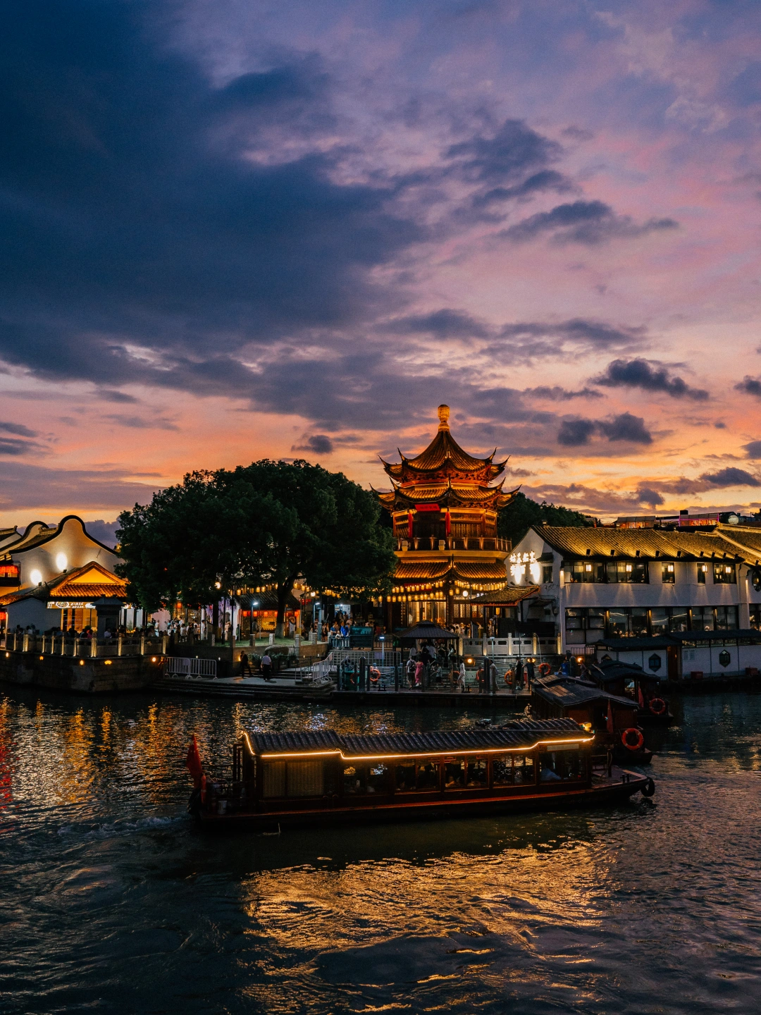 华灯初上,红灯笼倒映在水中,游船穿梭,这才是江南夜景的精华。