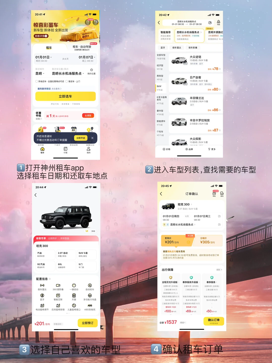 提前在神州租车上选了一辆SUV,什么路况都不用担心,落地昆明机场直接在机场服务点就取车了, 取车流程也很方便,📱操作不到10分钟就可以出发啦~