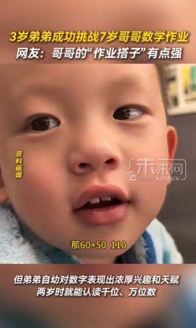 这就是天赋啊!上海,一位妈妈给7岁上二年级的大儿子检查数学作业,正算到一半,3岁的小儿子跑过来,一脸笃定地说自己也会。大人一开始都当童言无忌,随口念了几道加减乘除,结果小儿子几乎是脱口而出,速度比哥哥还快,算完就走,一点不拖泥带水。网友:一定要好好培养 孙女士(化名)那天照例坐在餐桌旁,给老大检查作业,作业不算难,主要是两位数加减、简单乘除,大儿子一边算一边想,有时还要掰着手指,孙女士耐着性子提醒步骤,气氛算不上紧张,但也谈不上轻松。 正算到一半,3岁的小儿子从客厅跑了过来,手里还抱着玩具车,他凑到桌边,盯着本子看了几眼,突然一本正经地说,这个他也会。 孙女士听了笑了笑,只当是孩子模仿哥哥,顺口敷衍了一句,“你这么小,哪会算这个”,没想到小儿子并不服气,站在一旁不走,反而一脸笃定,非要“证明自己”。 孙女士半开玩笑地念了一道最简单的加法题,“三加四等于几?”话音刚落,小儿子几乎是脱口而,“七”。,语气干脆,没有任何犹豫,孙女士以为是蒙的,又随口念了一道减法,小儿子依旧秒答。 这下她有点愣住了,她又换了几道题,难度一点点往上提,甚至掺进了乘法和简单的除法,结果让她越来越意外,小儿子几乎题题不假思索,答案准确,说完就站在原地等下一题,神情自然得像是在报数。 反倒是旁边的大儿子,一脸震惊,原本还在慢慢演算的他,算到一半直接停了笔,盯着弟弟看,表情里既有不服气,也有点被“碾压”的懵。 事后孙女士回想,小儿子平时确实喜欢跟着哥哥“听课”,哥哥写作业时,他常坐在一旁听孙女士念题,有时还会跟着嘀咕几句,家里人一直没当回事,只觉得是学舌,没想到孩子早就把数字和规律记在了心里。 这段经历被孙女士发到网上后,引来不少网友围观,有人感叹“这就是天赋型选手”,也有人提醒别急着给孩子贴“神童”标签,三岁会算数未必代表以后一路领先,还有不少家长表示,自家小孩也是在“旁听”中学会的,关键在于环境,而不是刻意训练。 对孙女士来说,这次意外并没有改变她的教育计划,她更在意的是,孩子对学习保持兴趣,而不是被过早比较,至于那个算完就跑的小儿子,她笑着说,“至少现在,他只是觉得算数好玩。” 信息来源 :未来网