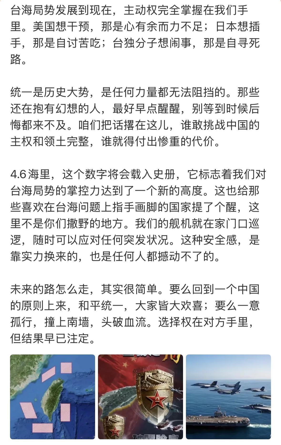 美国、🇯🇵都不会死心,“台独”分子也会负隅顽抗,我们必须做好斗争准备!