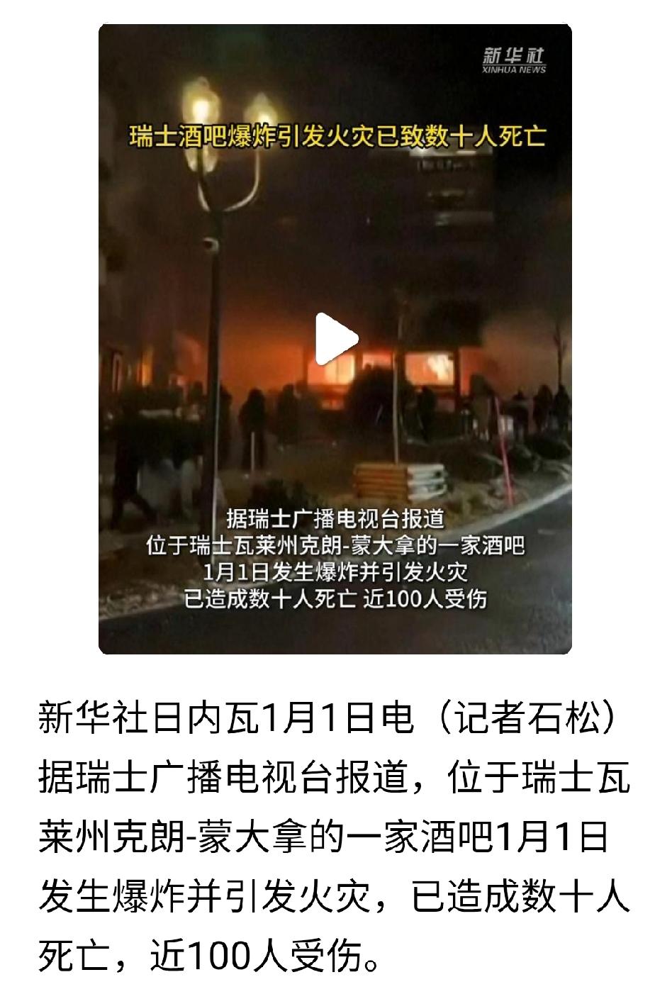1月1日,瑞士发生一酒吧发生了大爆炸,几十人死亡,上百人受伤。 现在还不能确定爆炸原因,但大概率是煤气燃爆。 燃爆的威力是非常巨大的,1月1日晚上,正是人们在酒吧欢度新年的时候,酒吧的人非常多。瑞士和平富有,不工作也能活的很好,又是中立国家,应该不会有人放炸弹吧?是有人嫉妒他们? 瑞士 燃气闪爆事故 酒吧