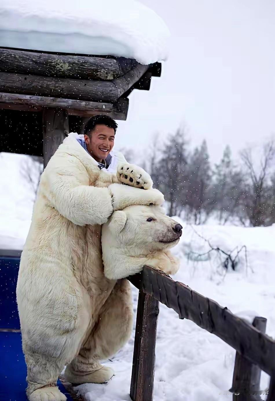 谢霆锋在东北穿上这身衣服,看起来是非常的暖和,这不是真正的北极熊皮,这应该是仿照北极熊皮制作的,真正的北极熊皮,以前在电视上看到过生活在北极圈里的人穿过,据说现在的羽绒服,就是基于爱基斯摩人衣服的灵感而设计的!