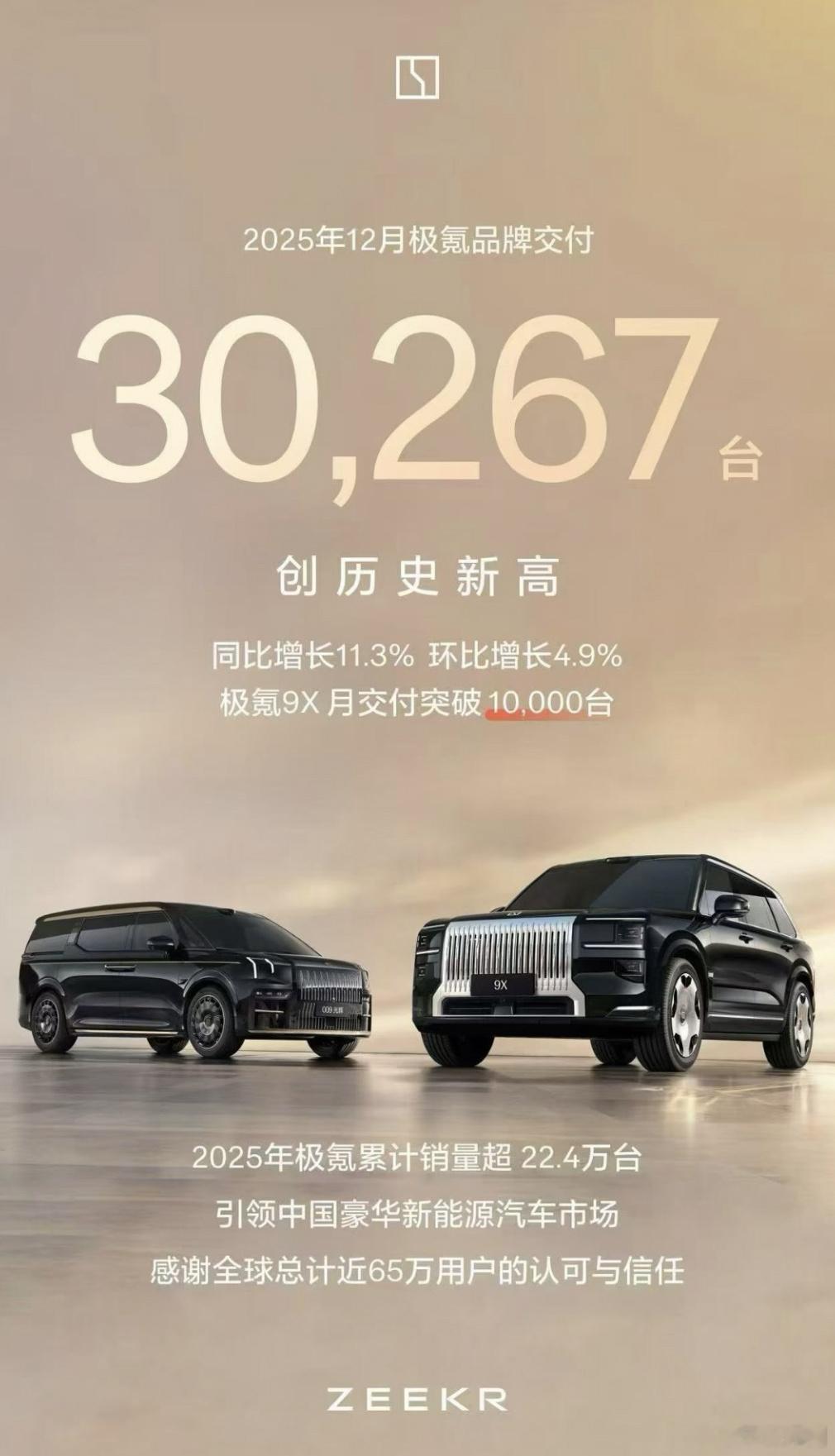2025 12月部分新势力品牌交付数据:零跑:60423辆;问界:57778辆;小米:50000+辆;理想:44246辆;小鹏:37508辆;蔚来:31,897辆(包含乐道、萤火虫后是48,135);深蓝:30999辆;极氪:30267辆;