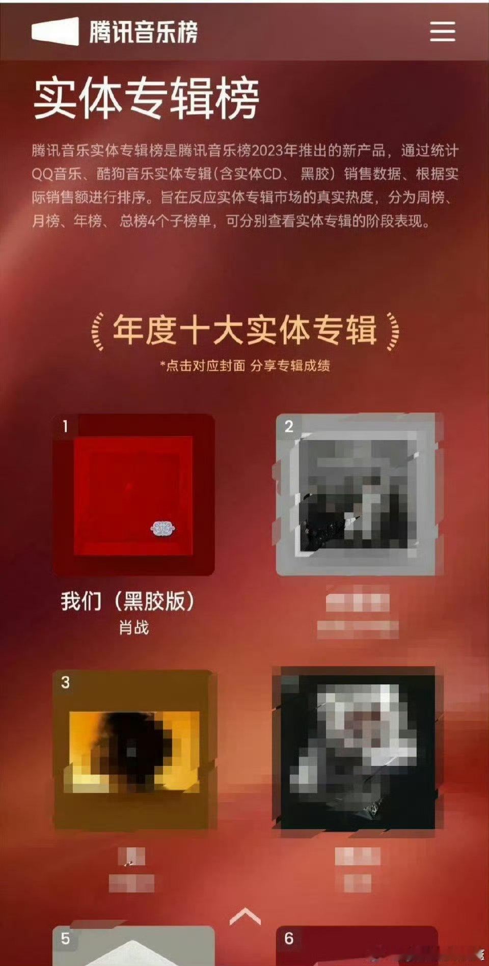 腾讯音乐榜发布25年十大专辑榜单,第一名是肖战2024年出的专辑《我们》影视歌