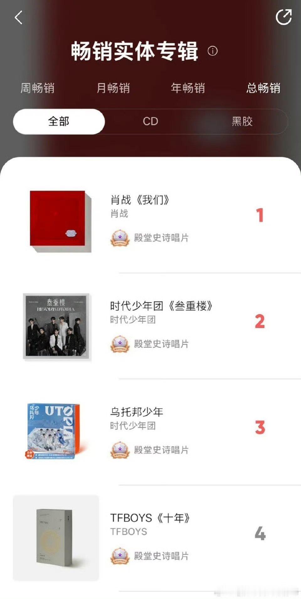 腾讯音乐榜发布25年十大专辑榜单,第一名是肖战2024年出的专辑《我们》 影视歌三栖