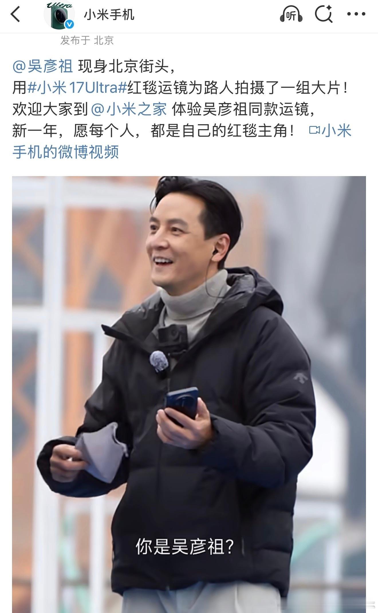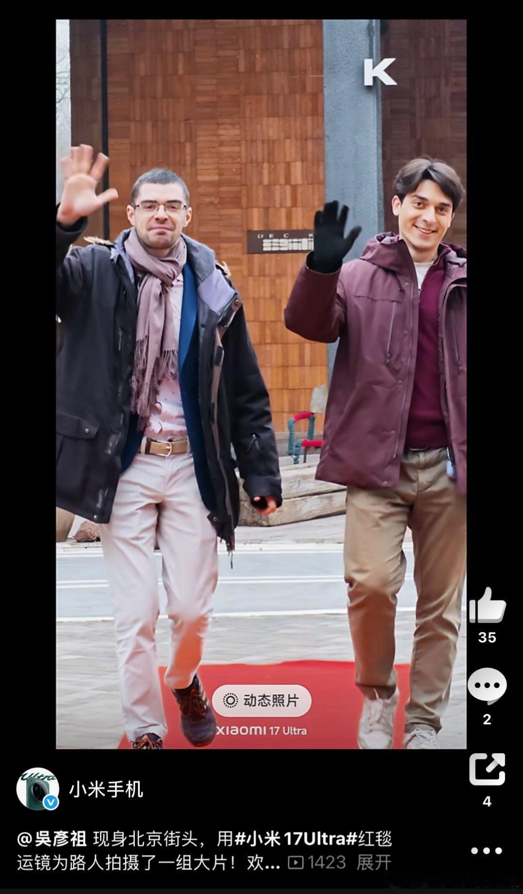 吴彦祖原来是在街头用17Ultra给路人拍红毯运镜啊元旦假期第一天,各位彦祖们用上小米17Ultra记录自己假期了么?这代17Ultra做得确实不错,影像能力够强,26年最顶影像机皇没毛病,徕卡版更是情绪价值拉满