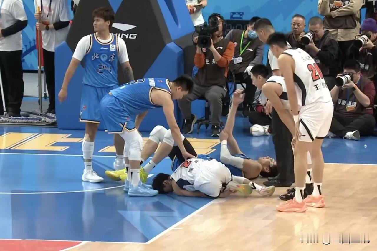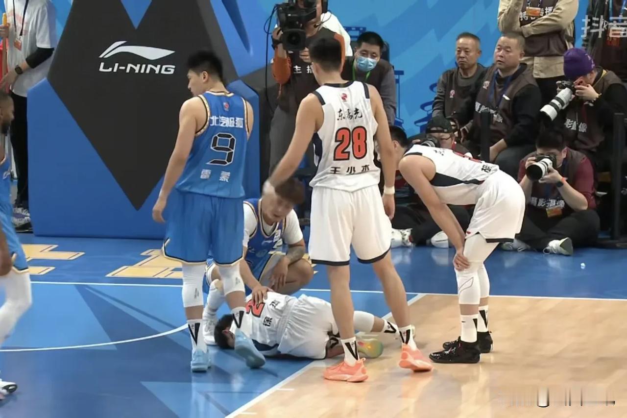 赛场突发情况!最高的周琦和最低徐杰的撞车了,萨姆纳是原罪。 杜锋上赛季说,山西汾酒男篮是依靠外援赢输球的,广东不靠外援。实际情况是这样的吗?北京与广东新年大战,首节北京28-14广东。次节进行了2分30秒,广东1分没得。北京33-14广东。6分26秒时,才依靠萨姆纳拿到2分。比赛进行到次节6分钟左右时,广东全队19分,萨姆纳个人16分。比赛进行到次节4分钟左右时,广东萨姆纳从背后撞了周琦,致周琦倒地,压到了徐杰小腿,徐杰被队友盖着擦汗巾背出场。43比24。次节还剩三分钟。徐杰新年不走运,但愿无碍吧。希望徐杰下半场能回到场上!