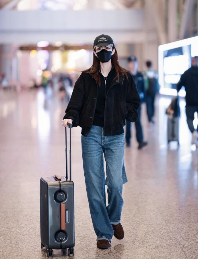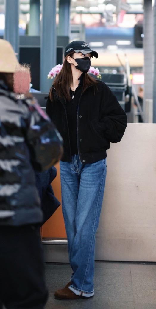今天张小斐亮相机场,她这次走复古风路线,看上去很有高贵之美。 张小斐里面穿黑色针织衫,外面套装黑色绒面外套,两件衣服叠穿起来效果很不错。 她下身穿蓝色牛仔裤,腰线拉得很靠上,还展现出了完美的身材比例。 张小斐脚踩咖啡色绒面鞋,头戴拼色风格的棒球帽,尽显超了洒脱感。 她有着极为苗条的身材,即使穿的宽松也超有明星魅力。 张小斐拉着一款灰色的行李箱,增添了前卫的感觉,气质特别的出众。