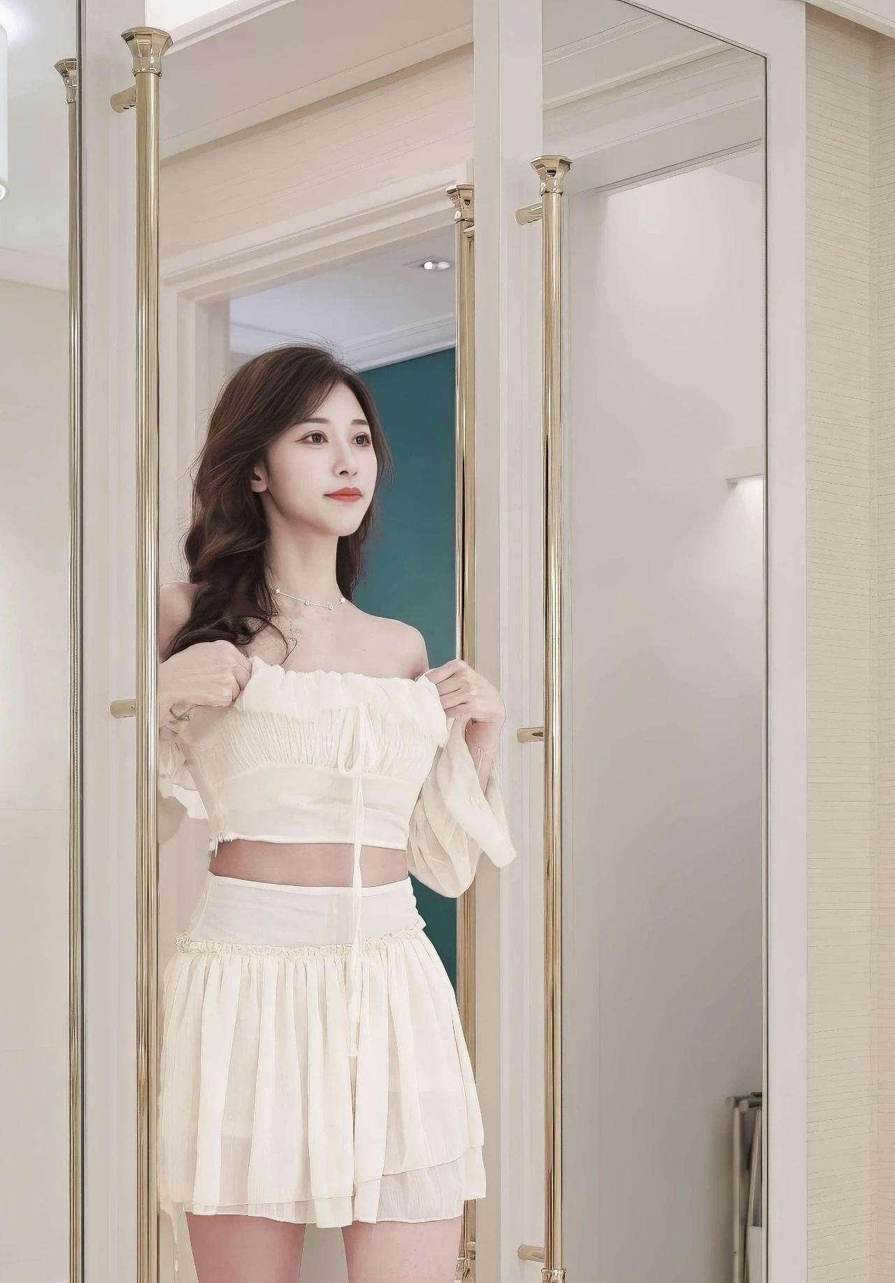 温柔系穿搭的浪漫,藏在奶油白的褶皱与裙摆里,氛围感拉满~