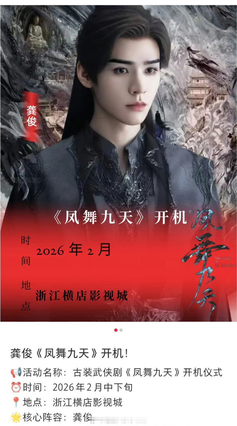 龚俊、郑业成《凤舞九天》组讯,暂定2026年3月开机