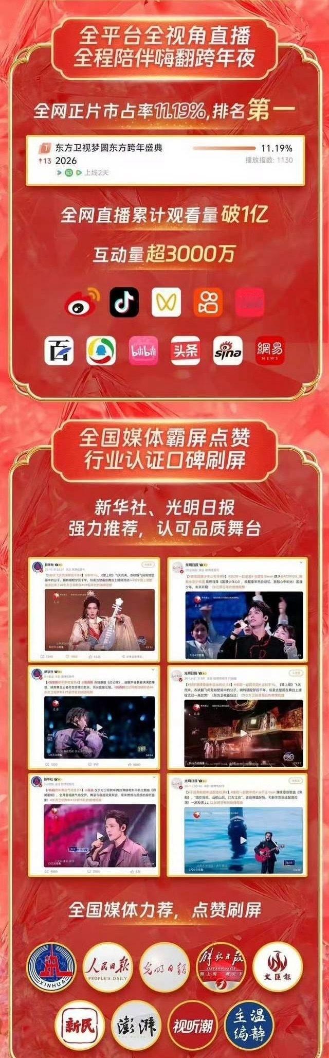 东方卫视跨年晚会官方战报!cvb收视率排名所有卫视跨年晚会第二,同比去年收视逆势提升25%,跨年晚会是2025东方卫视全年收视率最高节目,断层第一。肖战《得闲谨制》舞台创最高收视!肖战零点压轴创东方卫视跨晚最高收视份额东方卫视跨晚创微博热度指数第一☝️全网正片市占率第一☝️