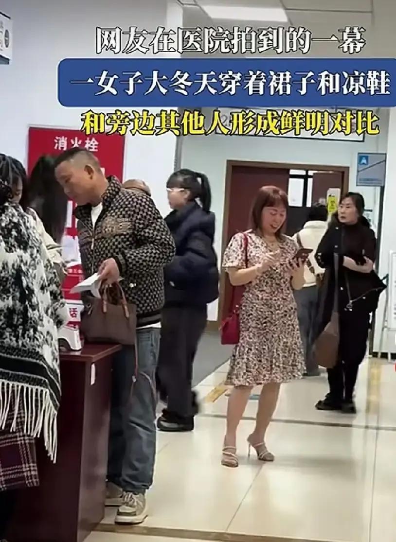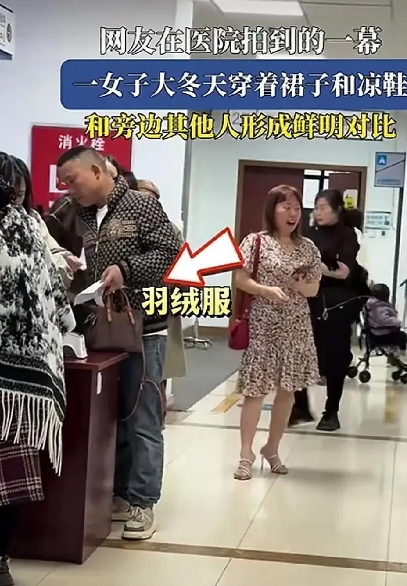 零下5℃穿高跟凉鞋,她真不冷? 四川医院实拍,羽绒服堆里冒出一抹短袖连衣裙。