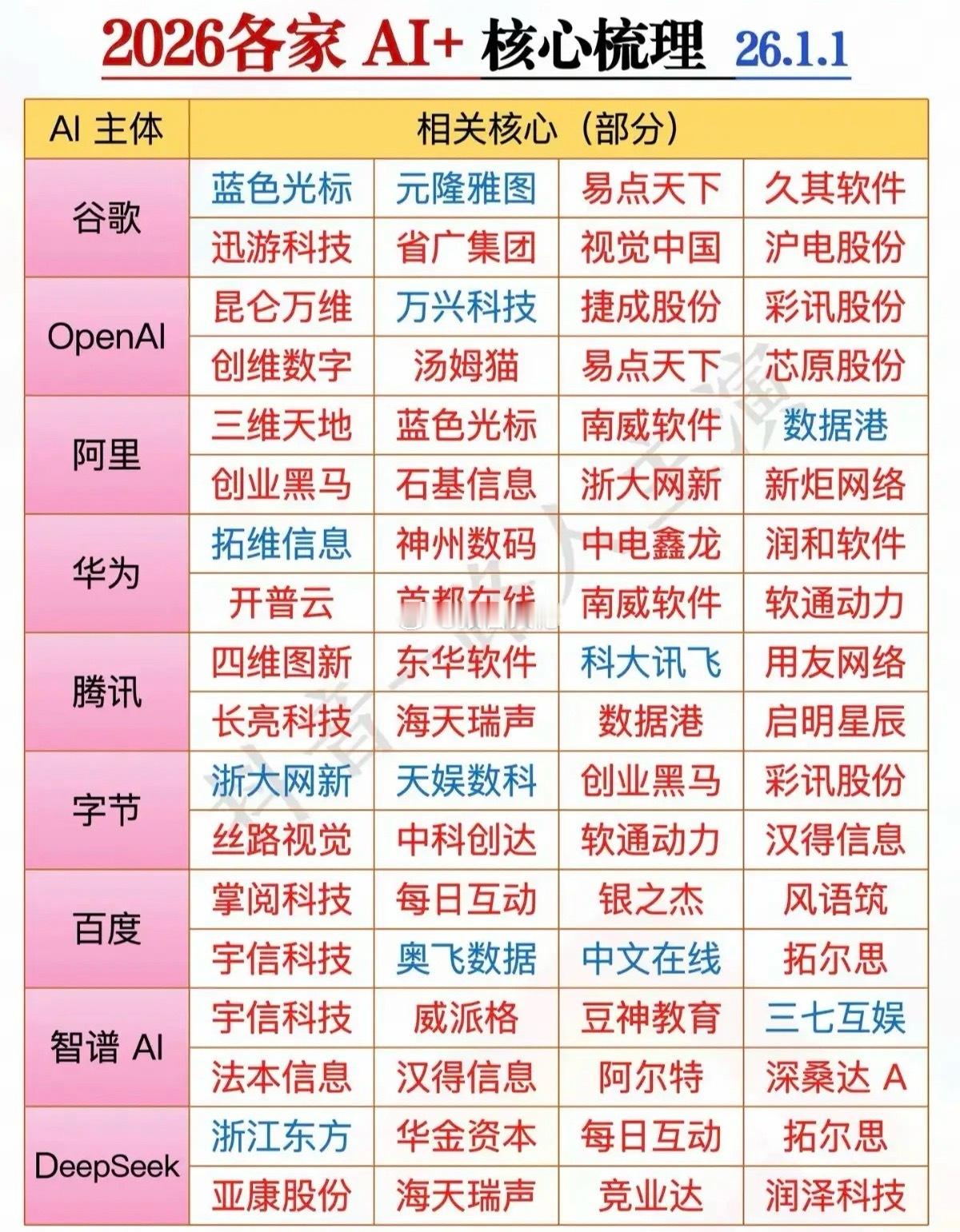 2026年:各家AI龙头股代表 梳理!谷歌,OpenAI,阿里,华为各家都有各自的代表。aI将改变人类认知