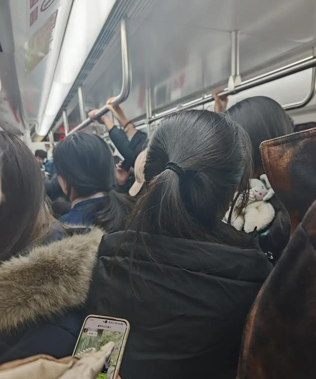 12月31号傍晚,无锡地铁南方泉往江阴外滩那趟车挤成相片。 我刷到的视频里,人贴