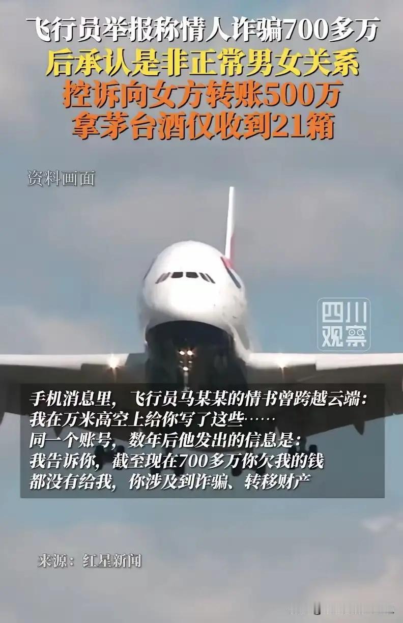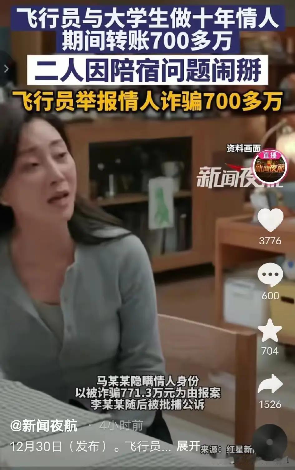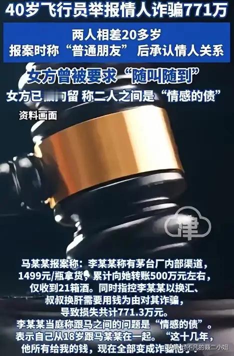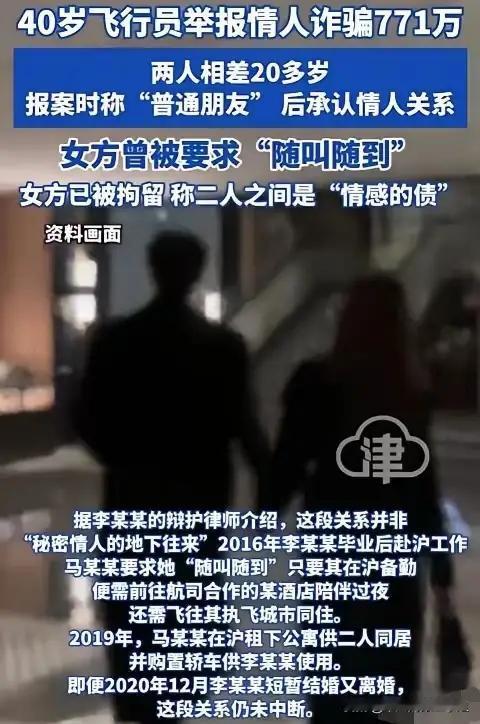 震惊!飞行员“马叔”暗藏十年地下情,少女“李某”倾尽青春,却陷入一场离奇骗局! 你是否曾以为,爱情可以超越一切?但当真相揭晓时,才发现,所谓的“真爱”背后,竟藏着如此令人心碎的阴谋!今天的故事,绝对让你大跌眼镜,感情的迷雾中,隐藏着多少你想象不到的秘密? 故事的主角是年轻漂亮的李某,她从18岁起就与已婚飞行员“马叔”纠缠不清。那年,李某还只是哈尔滨一所大学的普通学生,却因为一次偶然的相遇,走进了这位成熟男士的世界。马某,年长她34岁,家境殷实,身为一名飞行员,事业有成,生活优渥。他的出现,像一股暖流,点亮了李某的青春梦想,也让她沉醉在金钱与爱情交织的甜蜜中。 李某为了这份感情,奉献了自己最美好的青春。从18岁到30岁,她用十几年的时间,倾尽所有,甚至放弃了学业、放弃了未来的其他可能,只为了与马某在一起。她相信,这份感情是真挚的,是可以走到最后的。 马某对李某的迷恋,远不止普通情侣之间的爱慕。他的控制欲极强,要求她随叫随到,无论是在上海的酒店大床,还是在其他城市的夜晚,他都要她陪伴。为了方便两人相聚,马某在上海租了套公寓,还为李某购置了豪车。 从2018年至2023年,马某累计向李某转账超过700万元。这些钱,似乎代表着他对这段感情的投入,也成为了李某青春的见证。然而,随着时间的推移,激情逐渐退去,矛盾逐渐浮出水面。 2023年4月,两人关系出现裂痕。马某开始变得越来越苛刻,甚至提出让李某归还700多万元,否则就以诈骗罪起诉她。这个要求如同晴天霹雳,让原本的爱情变得支离破碎。 李某无法接受这样的指控,她一直坚持:“我从18岁就跟了你,十几年的感情,怎么能说是诈骗?这不过是我们之间的感情债。”她的眼中满是泪水,仿佛在诉说一段被利用的青春和付出。 令人难以置信的是,在这段地下情中,李某曾偷偷与其他男子交往,甚至有过一次短暂的婚姻。而令人震惊的是,她竟然在背地里还与马某保持着暗中的关系! 更令人疑惑的是,马某的妻子一直蒙在鼓里吗?这个家庭的秘密,似乎比我们想象的还要复杂。 2024年6月,马某在飞行途中,要求李某前去陪宿,却被她坚决拒绝。这一拒绝,成为两人关系彻底破裂的导火索。 随后,马某以诈骗为由,将李某告上法庭。2024年7月,李某被正式逮捕,成为众人关注的焦点。 面对法庭,她泪眼婆娑:“我从18岁就跟了你,十几年的感情,怎么能说是诈骗?这只是感情债。” 这场官司背后,隐藏着多少不为人知的秘密?李某到底是受害者,还是被利用的棋子? 她的青春,她的付出,是否都变成了马某的一场“骗局”? 在这个故事中,最令人震惊的,或许是马某的妻子是否知道这一切?她是否也在无声中承受着背叛的痛苦? 这些疑问,成为了网友们热议的话题。有人感叹:爱情到底是信任,还是利用?有人质疑:这样的感情,值得吗? 这场感情的背后,究竟隐藏了多少不为人知的秘密?李某的青春是否被利用殆尽?马某的“爱”是否只是一场利益的交易? 你怎么看待这段十几年的地下情?你觉得,爱情与利益,到底孰重? 欢迎在评论区留言,分享你的看法!你是否曾遇到过类似的故事?你认为,这样的感情还能挽回吗? 飞行员爱情故事 马界爱情故事